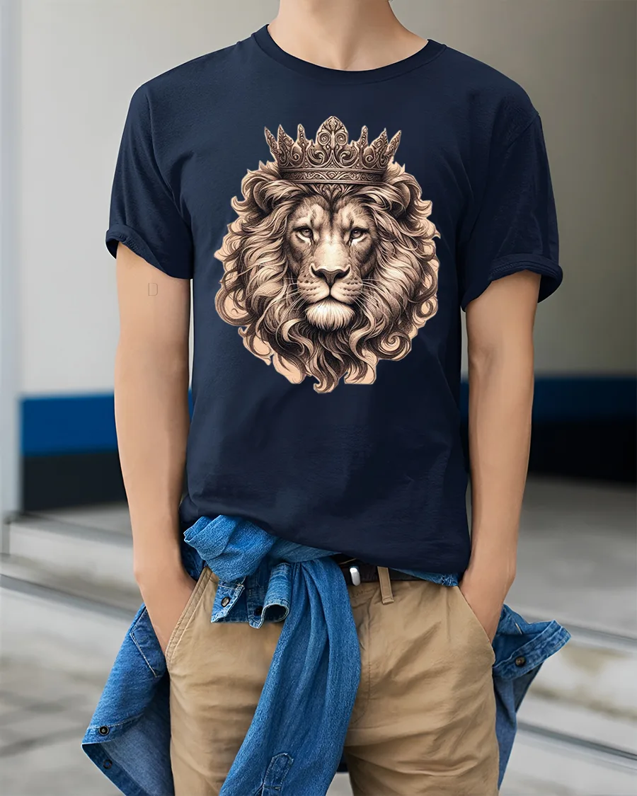 The royal lion artwork represents inner strength pride and fearless individuality making it a statement piece in any casual wardrobe.
