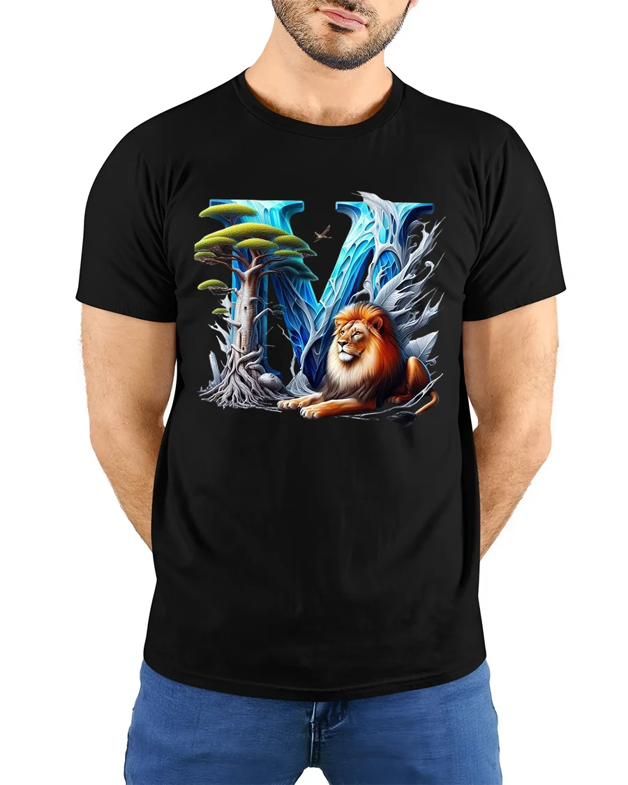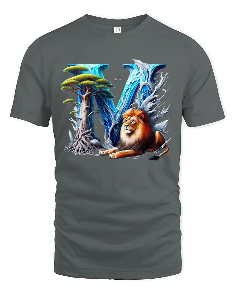 Majestic Lion Letter V Fantasy Graphic Tee With Nature Power Art captures strength beauty and imagination in one striking design.