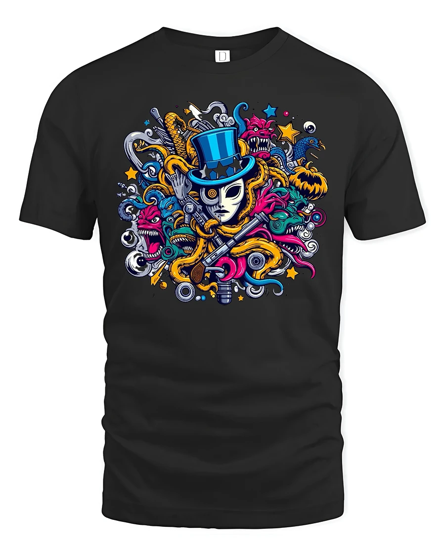The Masked Magician Chaos Art Graphic T-Shirt Design is not just apparel but a wearable artwork. Whether you’re into gothic carnival themes, psychedelic art, or unique fashion that stands out from the crowd, this shirt is a must-have addition to your wardrobe. Pair it with jeans, streetwear sneakers, or layer it under a jacket for an effortlessly cool look.