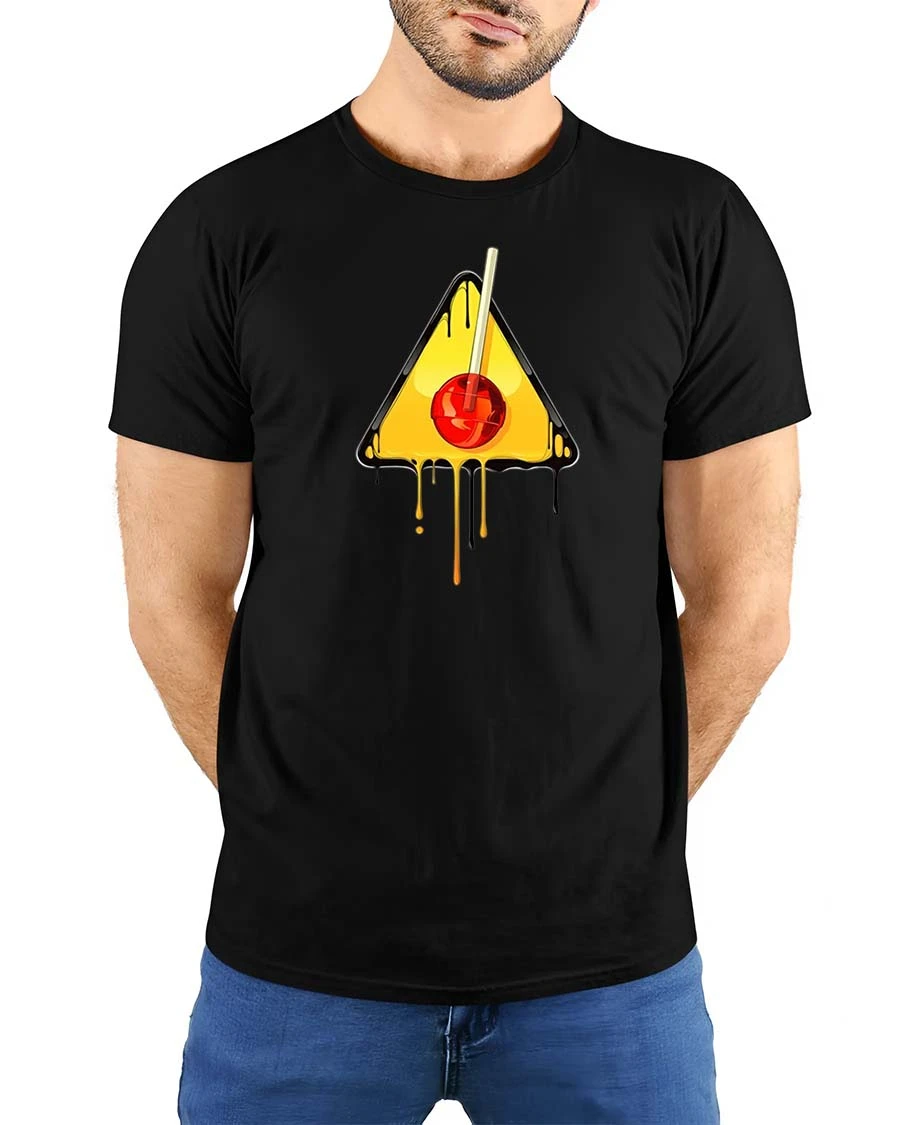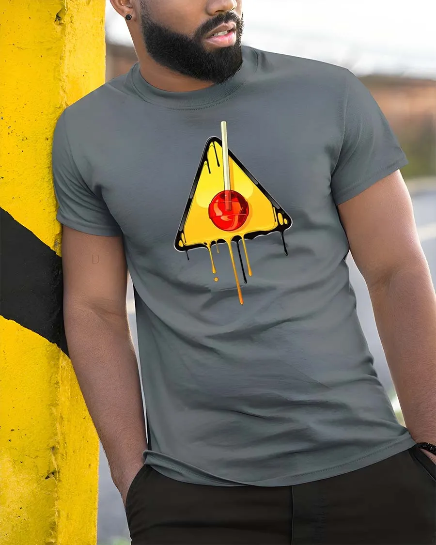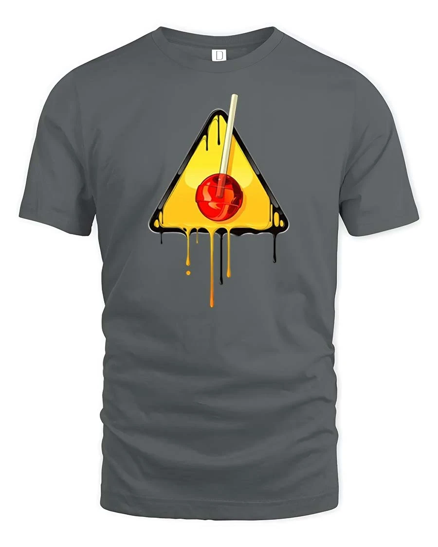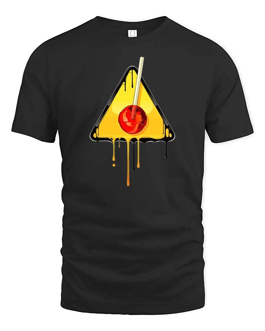 Melting Cherry Warning Sign Graphic t-shirt Cool Art Tee adds creativity and personality to any wardrobe.