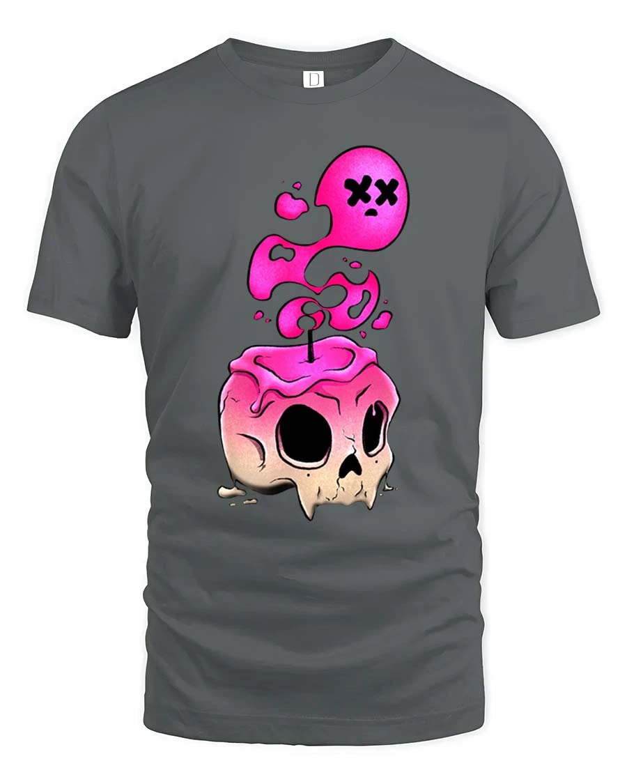 Featuring a unique melting skull with vibrant pink drip effects, this t-shirt delivers a striking visual that stands out instantly.