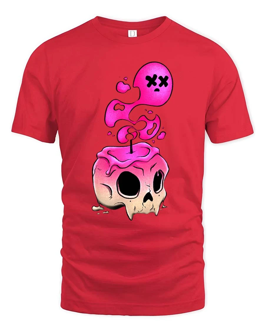 Melting Skull T-Shirt Pink Drip Gothic Graphic Tee - red t-shirt on white background