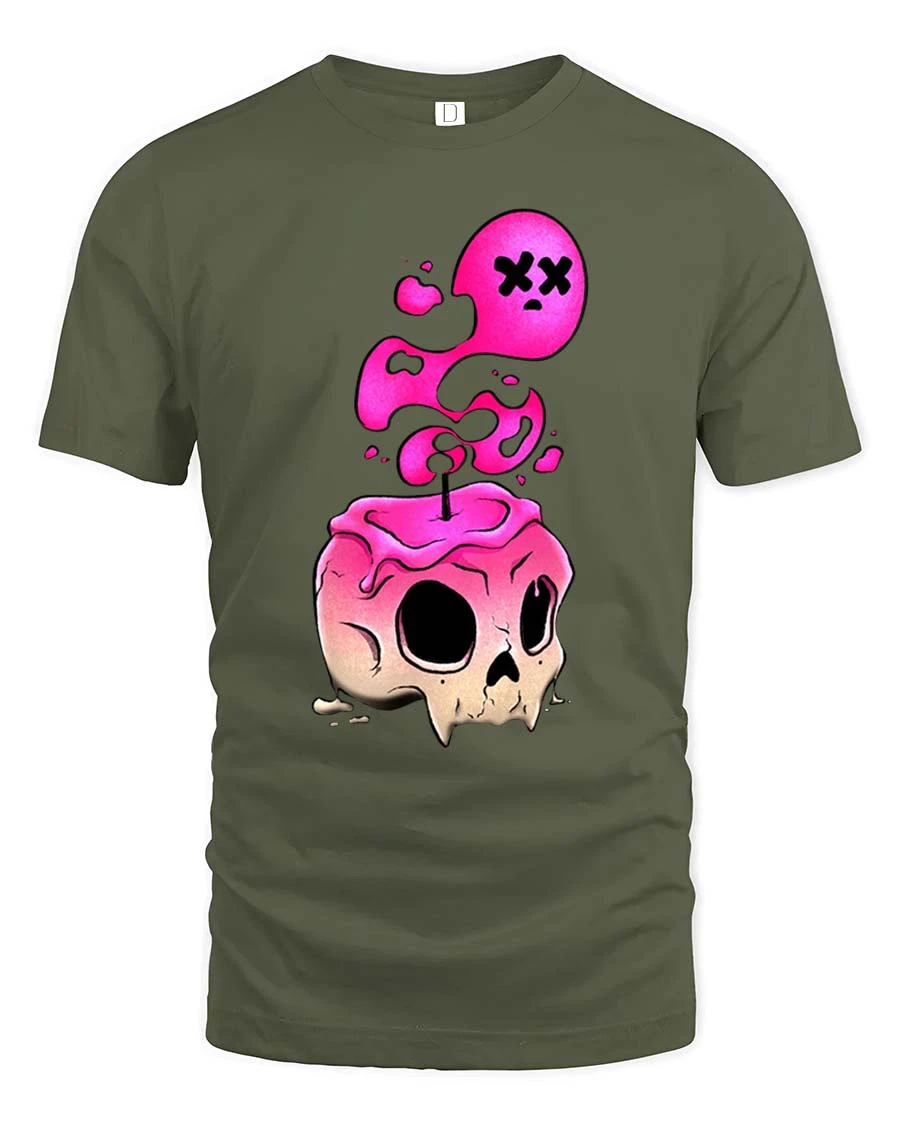 Melting Skull T-Shirt Pink Drip Gothic Graphic Tee - military green t-shirt on white background