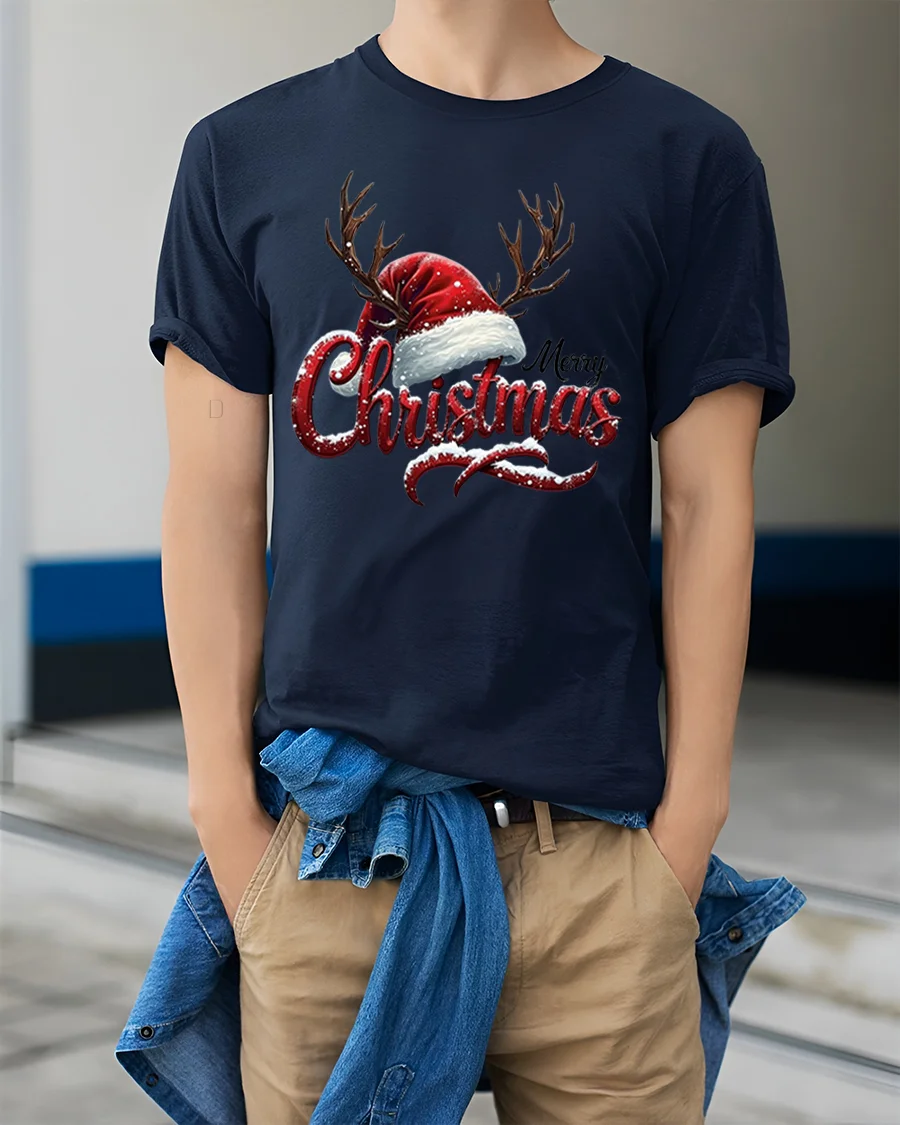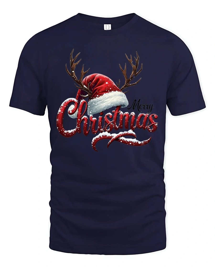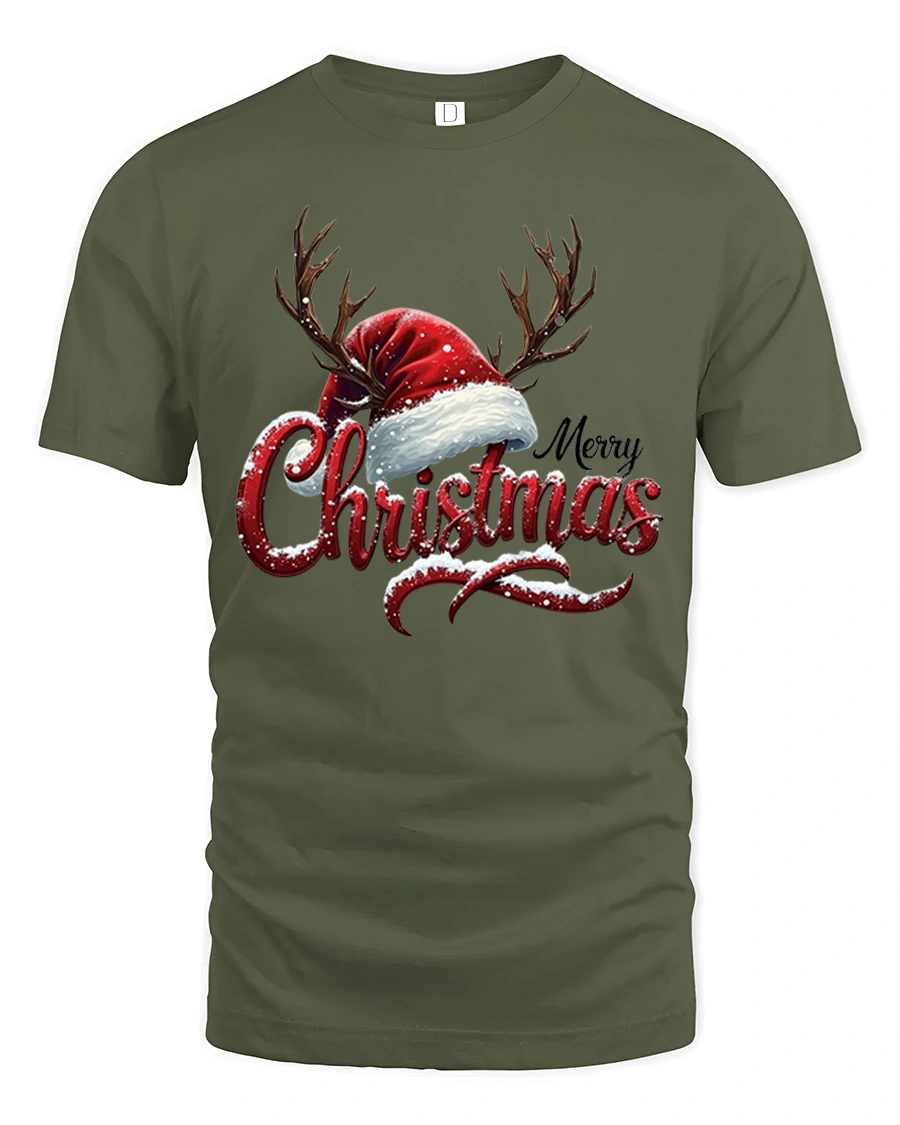 Merry Christmas Antler Hat Tee Festive Holiday Graphic Tshirt brings cheerful holiday spirit to your wardrobe with a bold and eye-catching design. Featuring a festive Santa hat adorned with rustic antlers and snowy lettering, this tee captures the warm, magical feeling of Christmas in a stylish and fun way. The vibrant script paired with wintery details makes it the perfect piece for holiday gatherings, family photos, and seasonal celebrations.