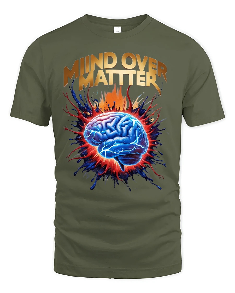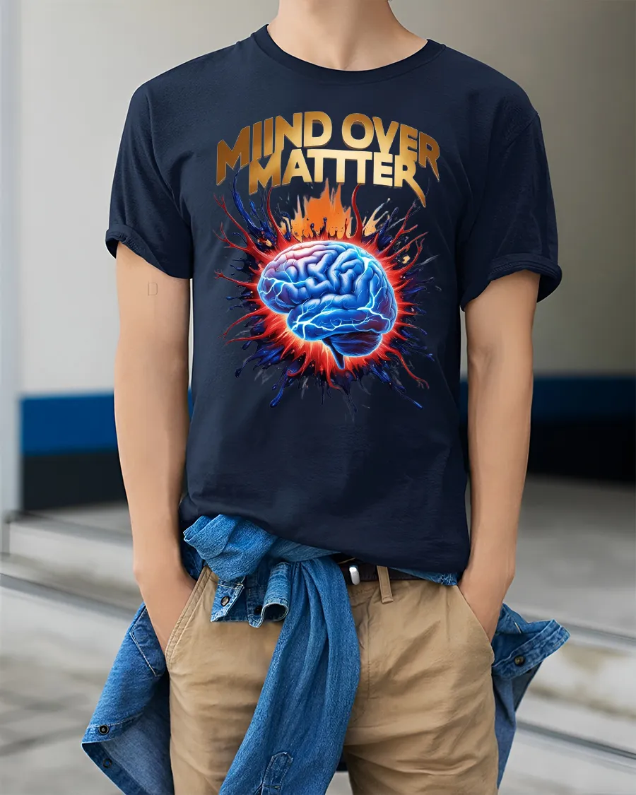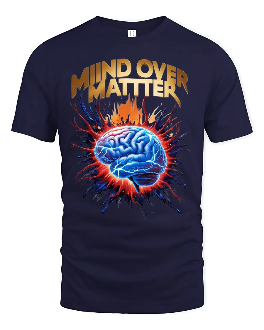 Mind Over Matter Motivation Tee with Exploding Brain Graphic Art is designed for those who push limits, chase goals, and believe in the power of mindset. Featuring a bold golden “Mind Over Matter” header combined with a vivid electric-blue brain bursting with fiery energy, this tee captures determination and mental strength in a powerful visual statement. Perfect for athletes, students, gym-goers, entrepreneurs, and anyone who thrives on motivation, this shirt inspires confidence everywhere you go.