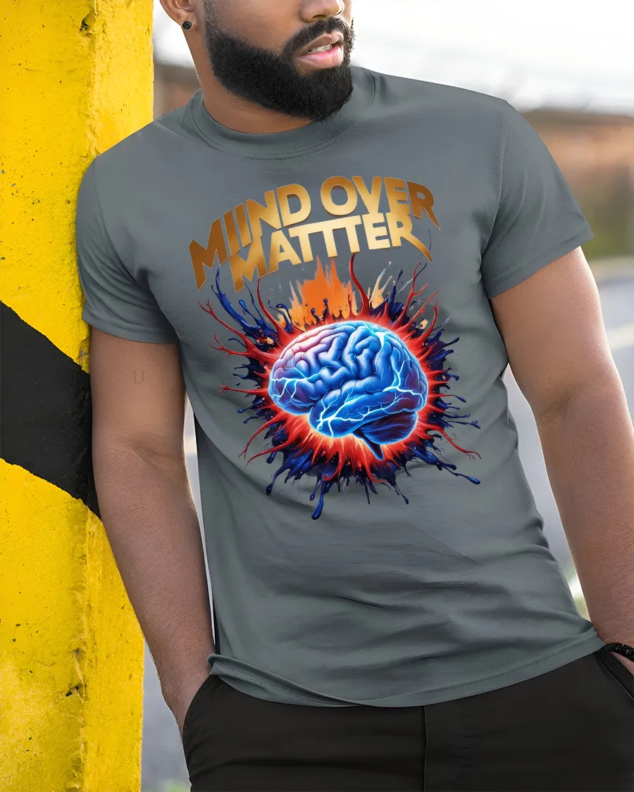 The Mind Over Matter Motivation Tee with Exploding Brain Graphic Art also makes an excellent gift for people who love inspirational quotes, personal development, and striking graphic designs. The high-quality print keeps the bright colors, glowing brain illustration, and explosive effects crisp and eye-catching wash after wash. Pair it with gym shorts, jeans, joggers, or a hoodie to create a strong and energizing look.