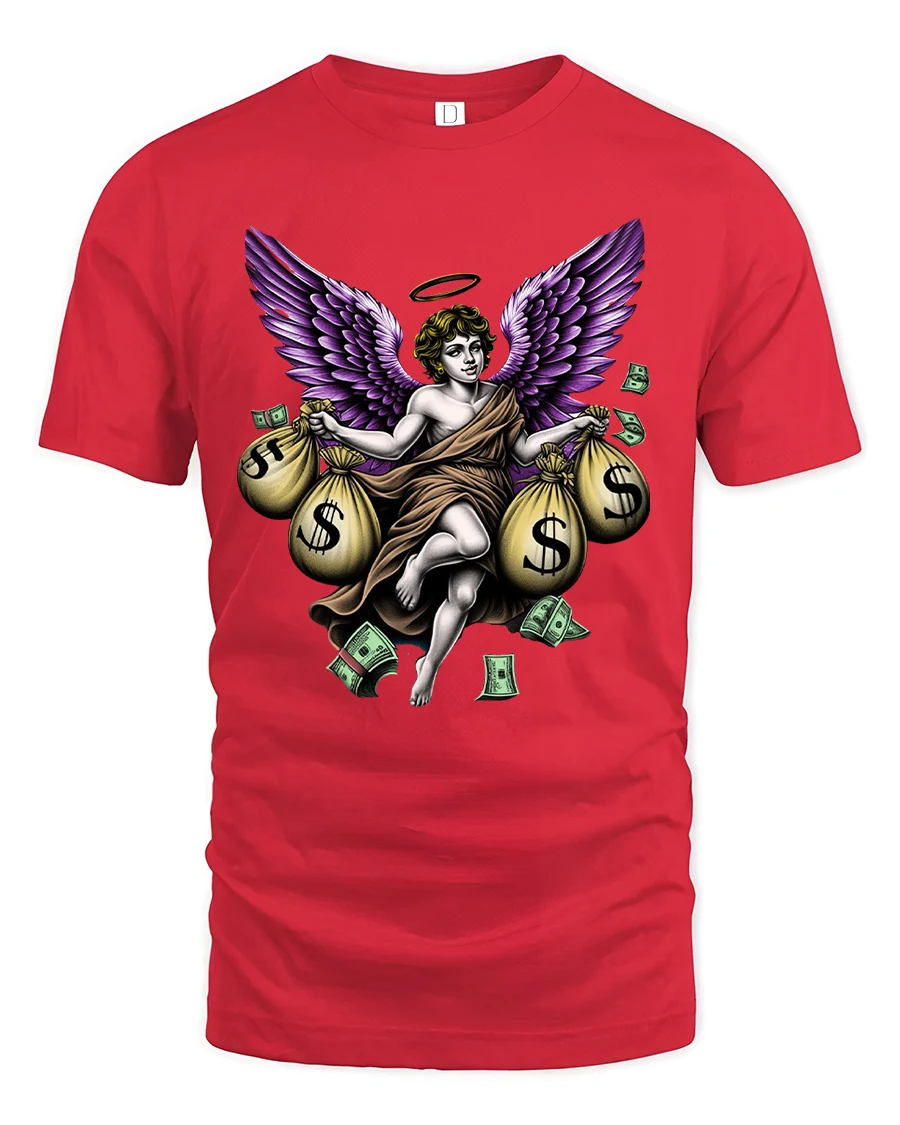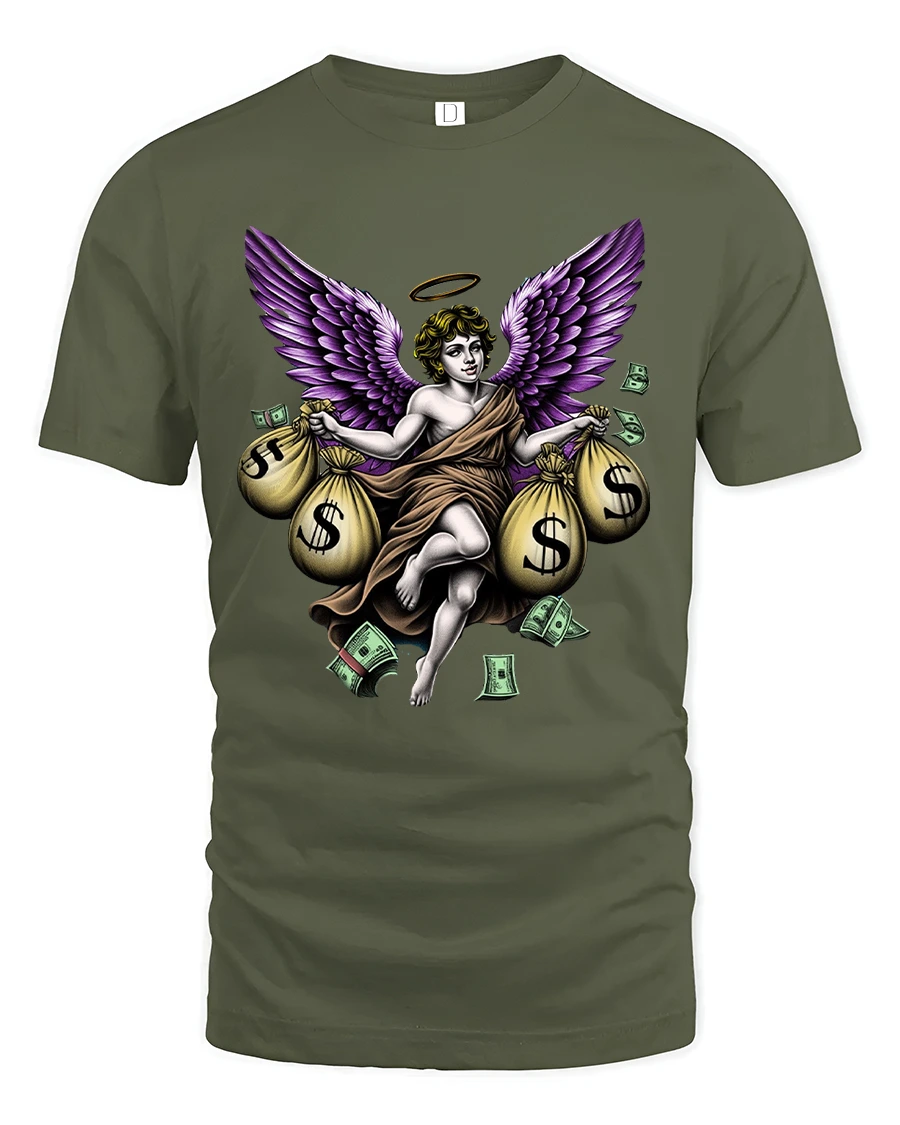 If you enjoy symbolic artwork, luxury inspired themes, and bold graphic designs, this money angel graphic t shirt is a powerful addition to your collection.