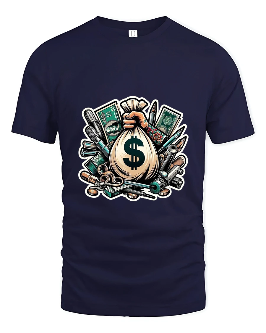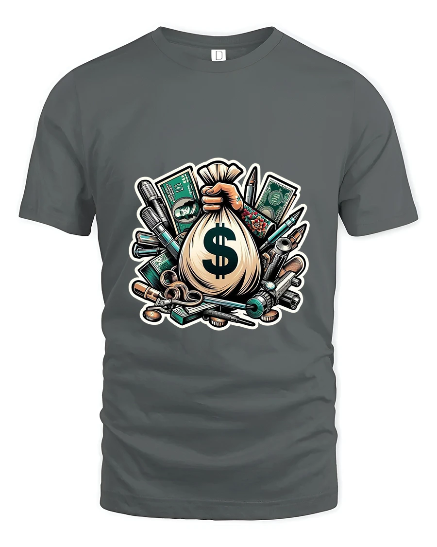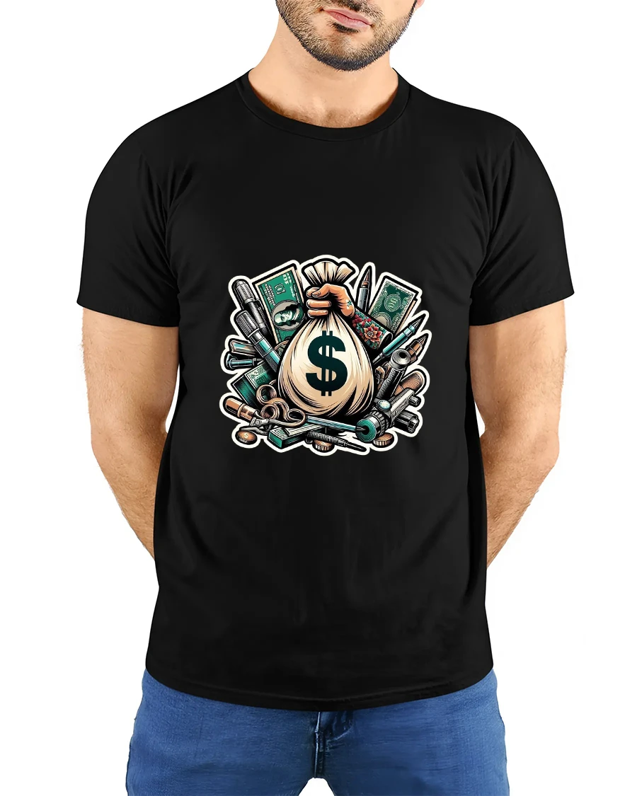 The Money Bag Hustle Art Tee Funny Cash Graphic T Shirt Style captures bold ambition and creative energy in a powerful graphic design.