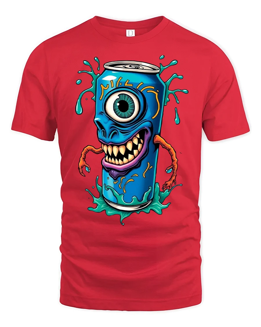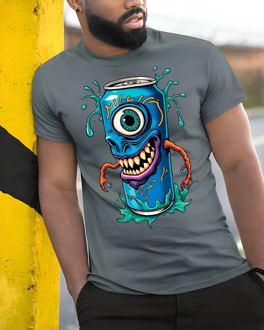 Monster Soda Can Cyclops Funny Graphic Print T-shirt is a bold and playful tee that combines creepy and comical vibes in one unique design. Featuring a wild soda can monster with one big cyclops eye, sharp teeth, and claw-like arms, this shirt is perfect for those who love quirky, eye-catching fashion.