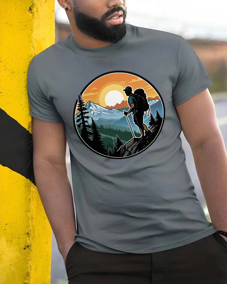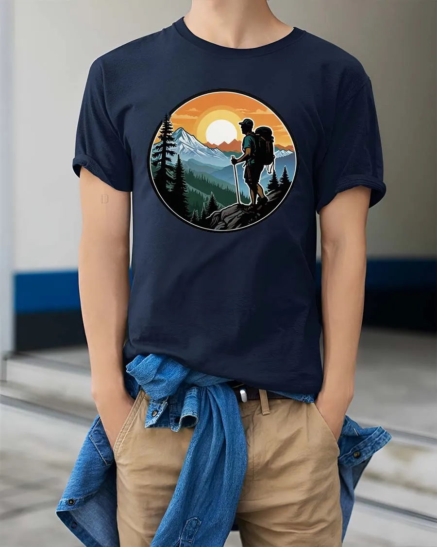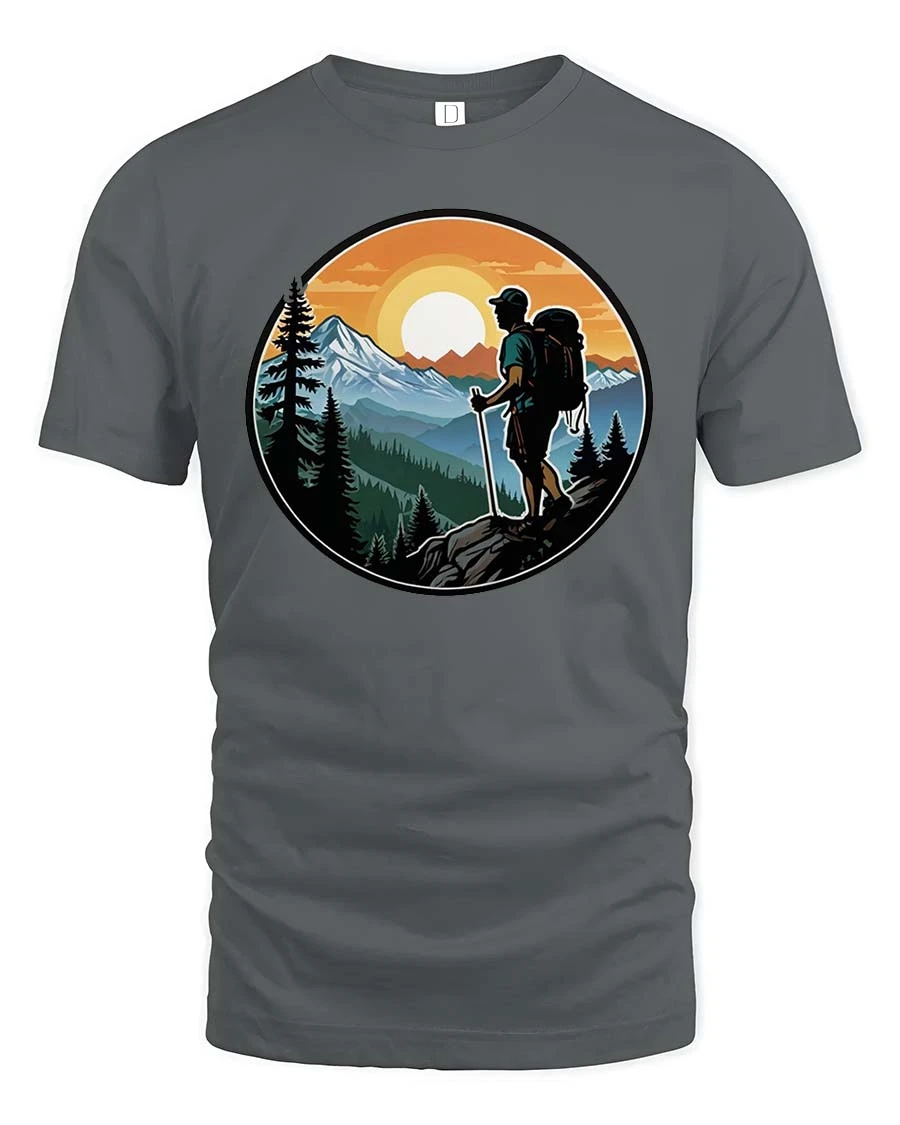 Mountain Hiking Adventure Sunset Nature Explorer Graphic Tshirt is perfect for those who love hiking and outdoor journeys.