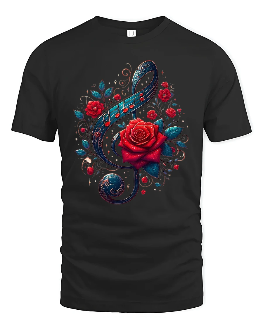 SKU: IMPD2411a11-1 Category: Abstract & Artistic Tags: artistic music note tee, artistic rose design, elegant floral tee, floral music shirt, music lover tshirt, music note apparel, music themed tshirt, musical art shirt, musician style top, red rose tshirt, romantic rose art shirt, rose graphic tee, stylish musician tee, treble clef tee, trendy floral graphic