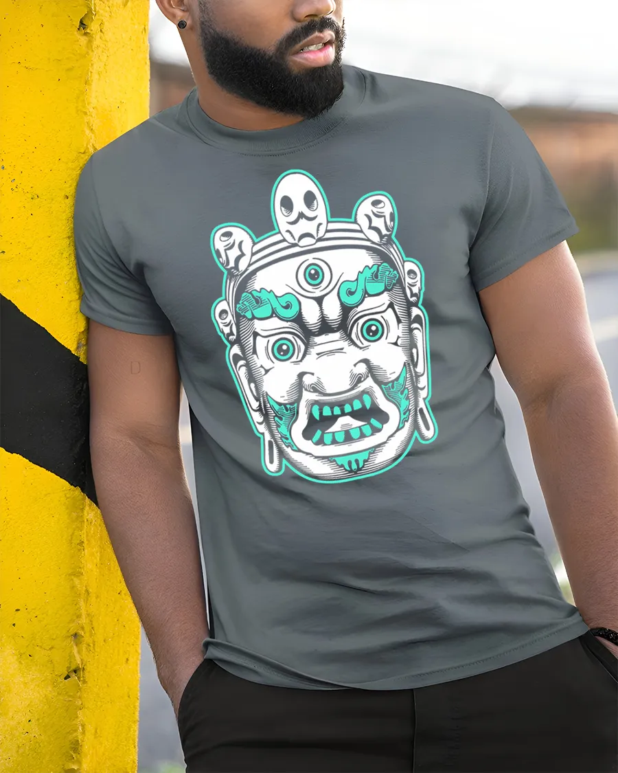 The Mystic Guardian Face Graphic Tee With Bold Tribal Art Style features a powerful illustrated mask inspired by ancient symbols and modern street aesthetics.