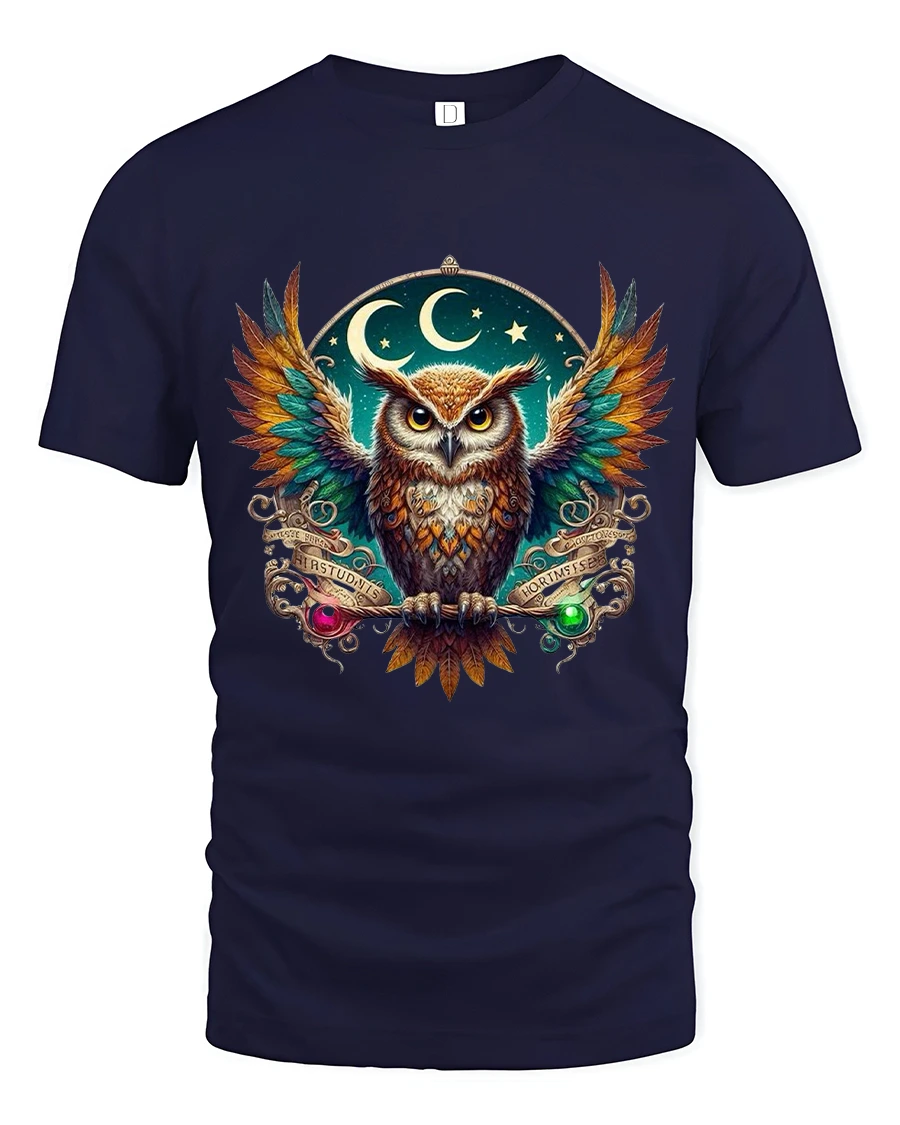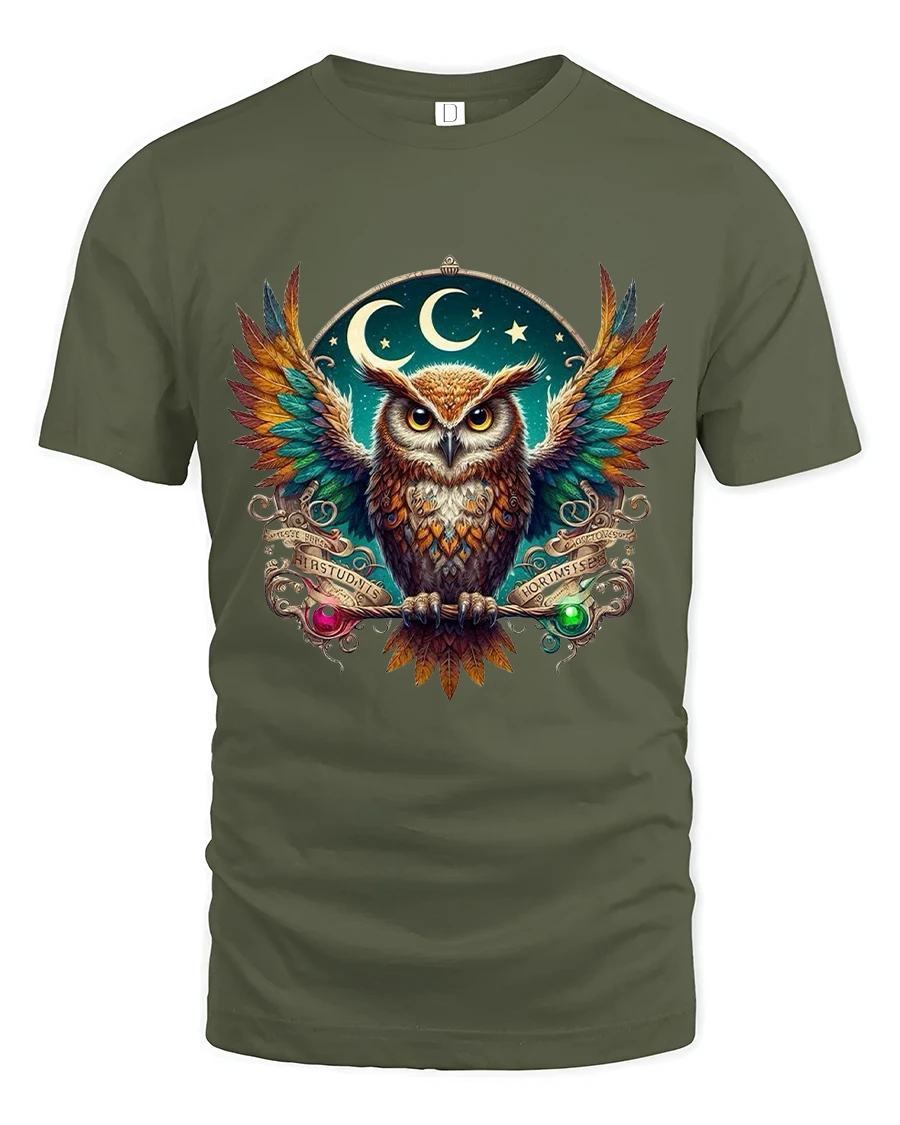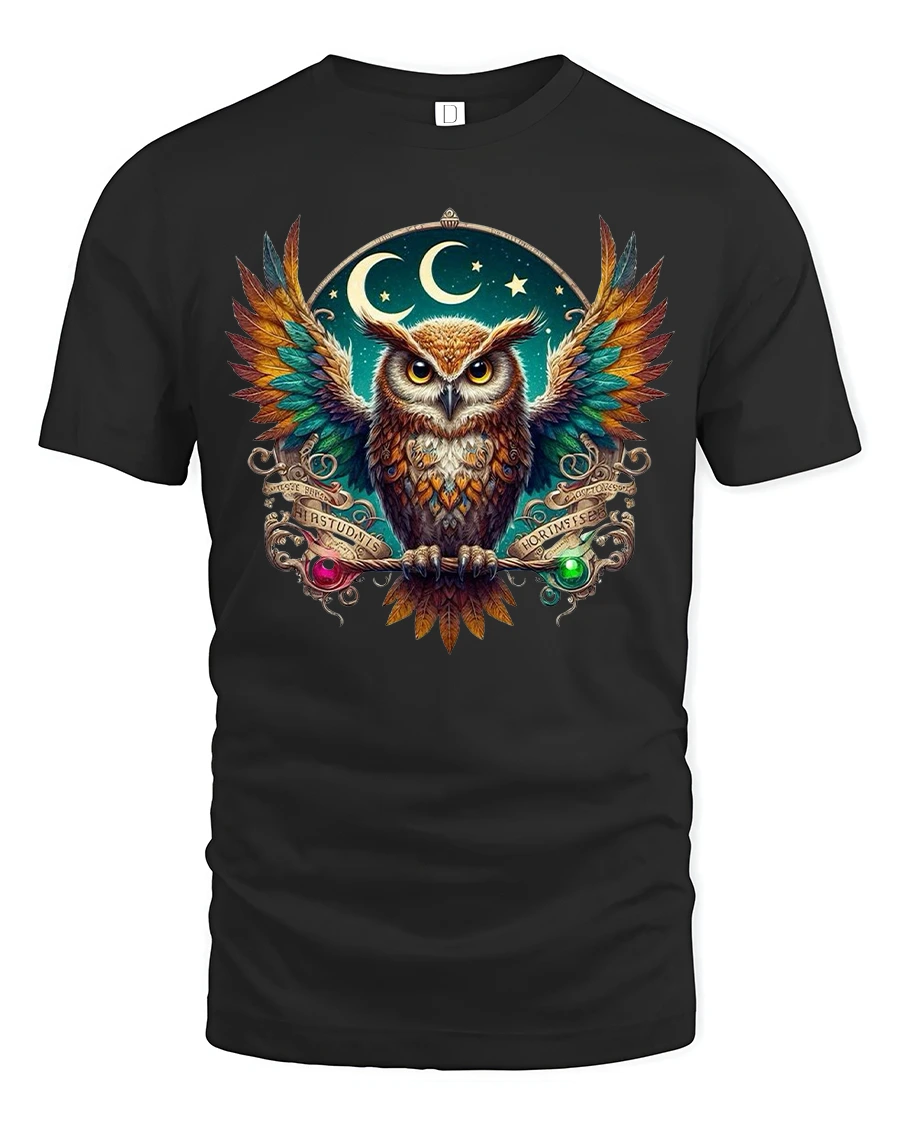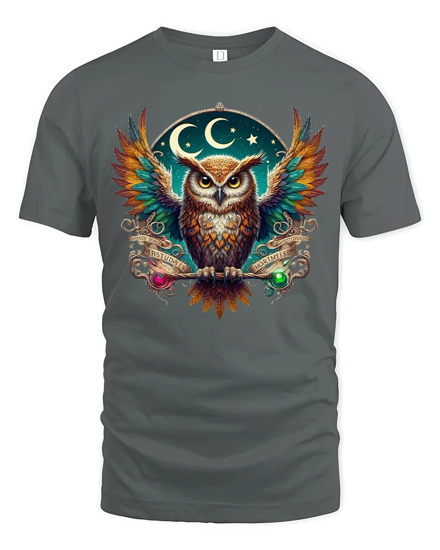 Mystic Night Owl Spirit Guide Graphic Tee is designed for those who love celestial art, deep symbolism, and bold, vibrant color. Featuring a stunning owl with rainbow wings framed by moons and stars, this t-shirt captures the essence of mystery, wisdom, and cosmic beauty. The detailed artwork stands out brilliantly, making it a perfect choice for fantasy lovers, nature fans, and anyone who appreciates eye-catching design.