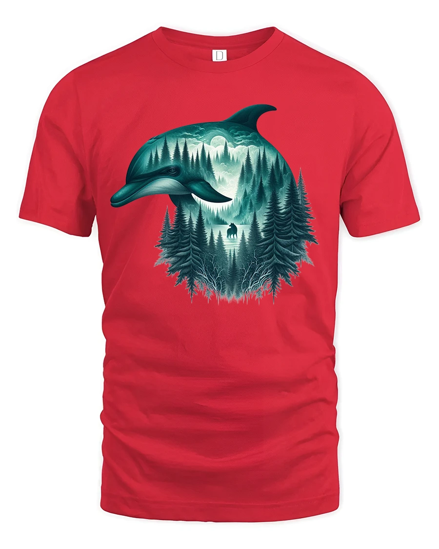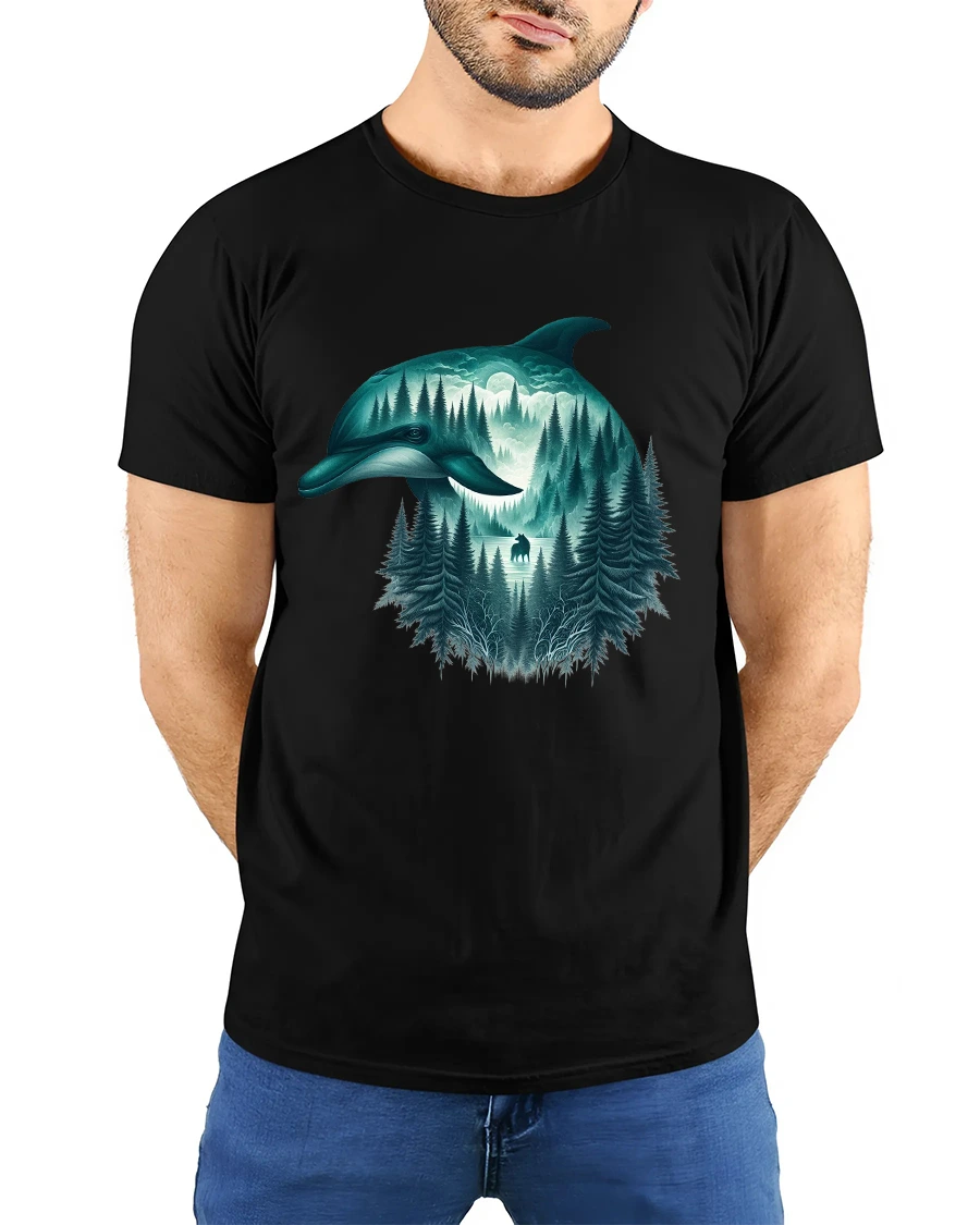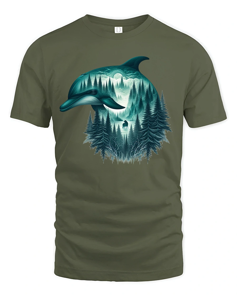 This dolphin forest graphic tee is ideal for nature lovers, ocean enthusiasts, and fans of fantasy inspired art.