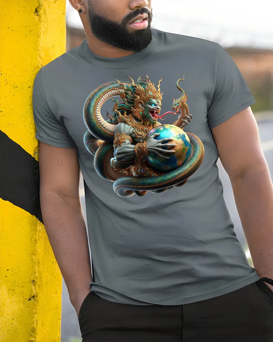Mythic Serpent God Earth Guardian Fantasy Art T-Shirt delivers a dramatic blend of mythology, power, and breathtaking fantasy artwork. The design features a fierce serpent deity wrapped around the Earth, embodying strength, mysticism, and ancient legend. Detailed scales, glowing colors, and intricate armor make this graphic a standout for fans of fantasy worlds, mythic creatures, and bold artistic expression.