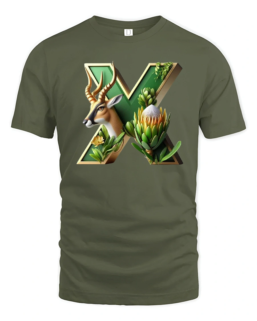 Nature Letter X Antelope Botanical Artistic Illustration Tee blends wildlife beauty with elegant typography and natural elements.