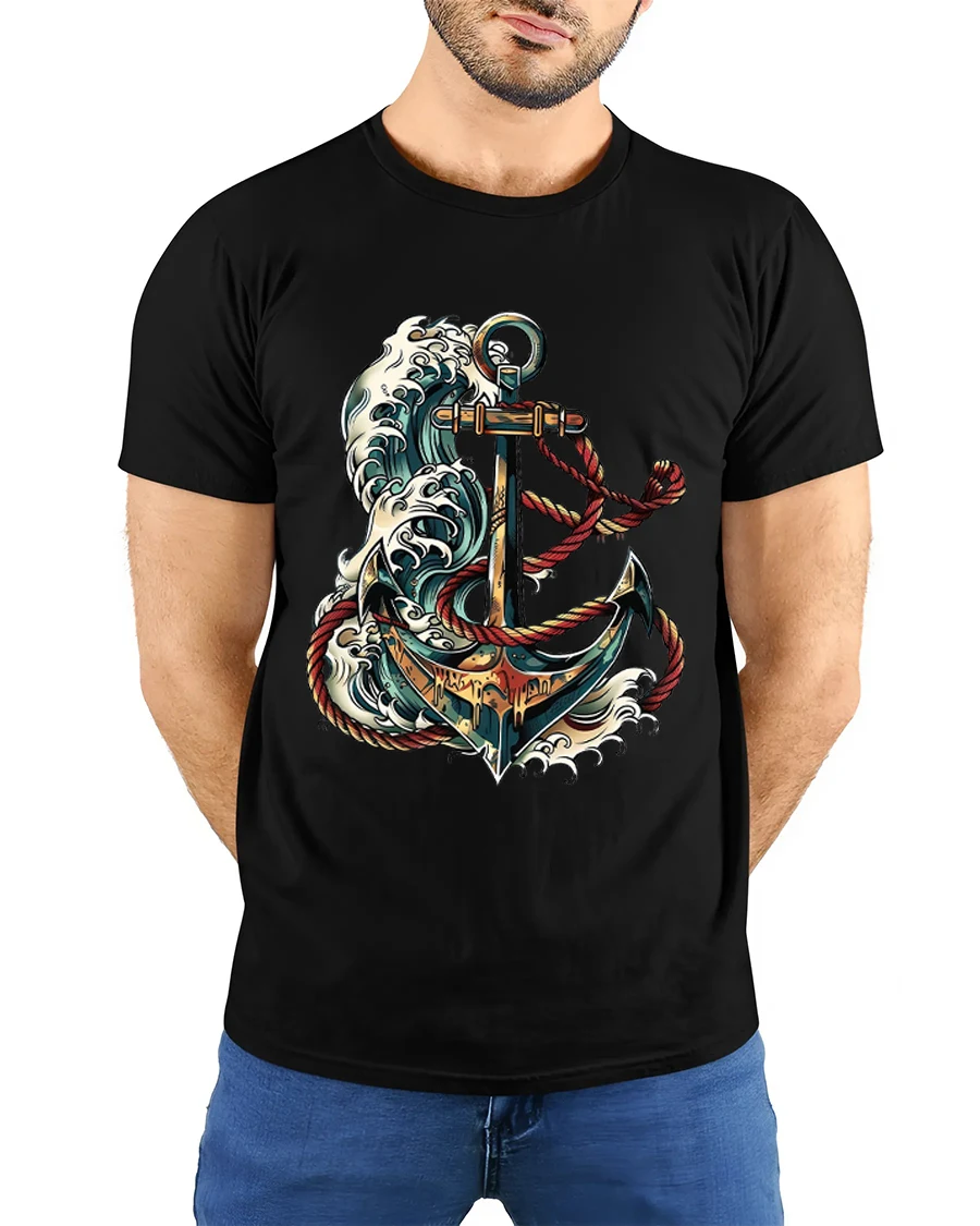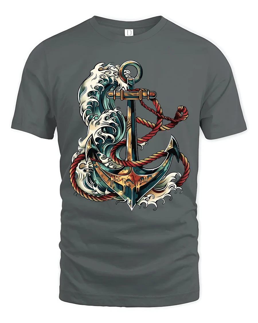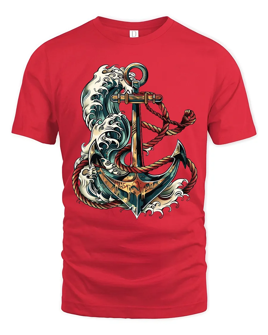 The Nautical Anchor Ocean Wave Illustration Graphic T Shirt brings together strength, balance, and timeless maritime style.