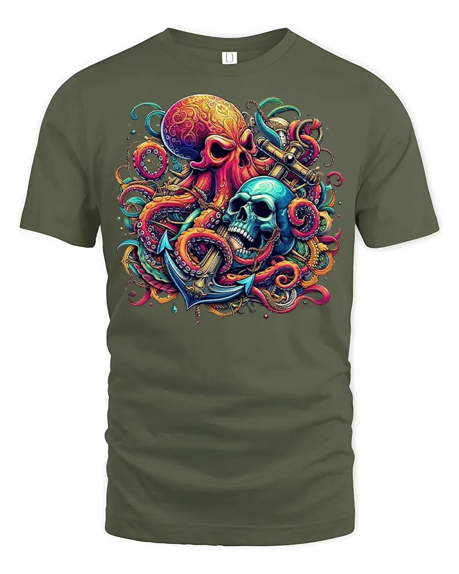 The Nautical Octopus Skull Graphic T Shirt delivers a powerful fusion of ocean mystery and dark artistic expression.