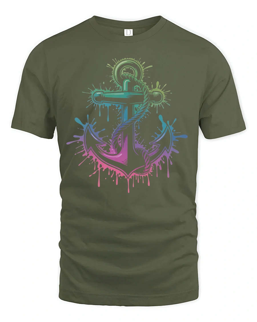 Tags: anchor t-shirt, beach vibes shirt, boat lover shirt, coastal graphic tee, colorful anchor design, gradient anchor art, nautical tee, ocean life t-shirt, ocean lover t-shirt, retro nautical shirt, sailor anchor tee, sea captain tee, summer vacation tee, trendy anchor shirt, tropical beach t-shirt