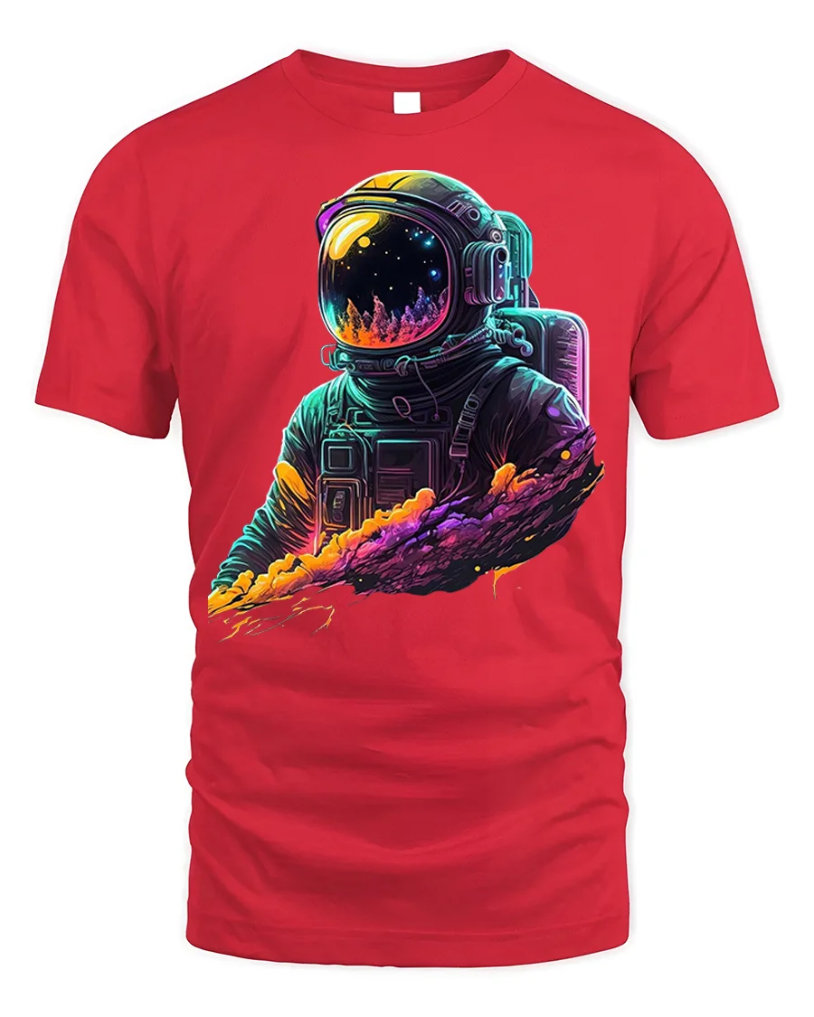 Neon Cosmic Astronaut Galaxy Drip T-shirt - red t-shirt on white background
