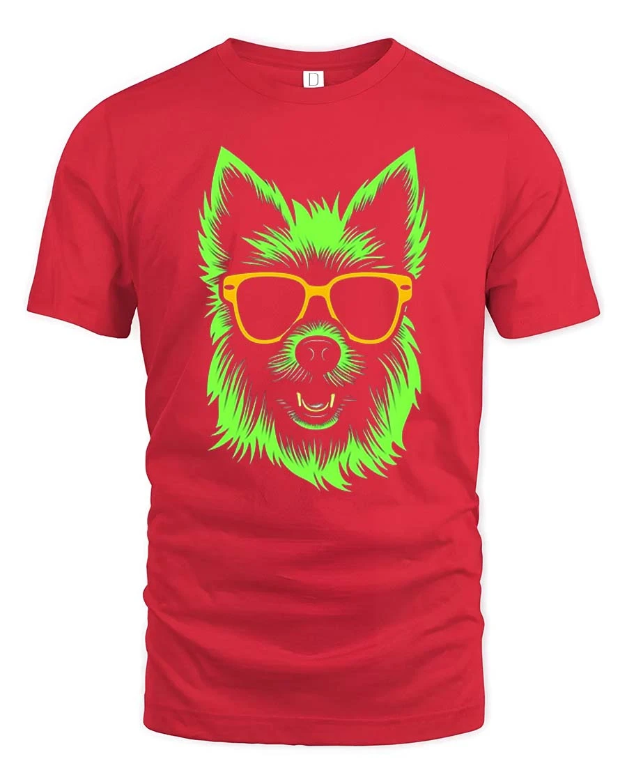 Featuring a vibrant neon-style dog wearing cool sunglasses, this t-shirt brings a fun and trendy vibe that instantly stands out.
