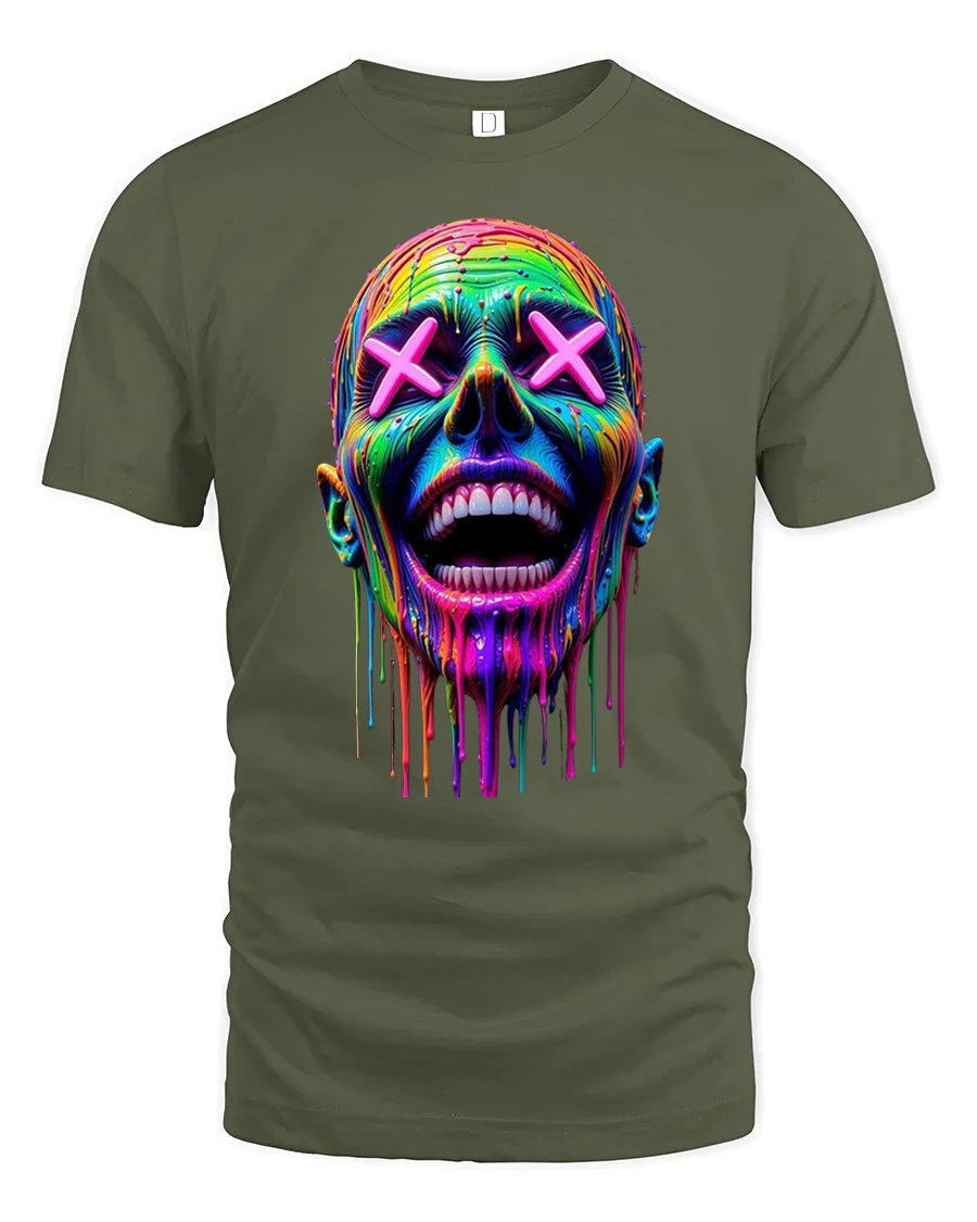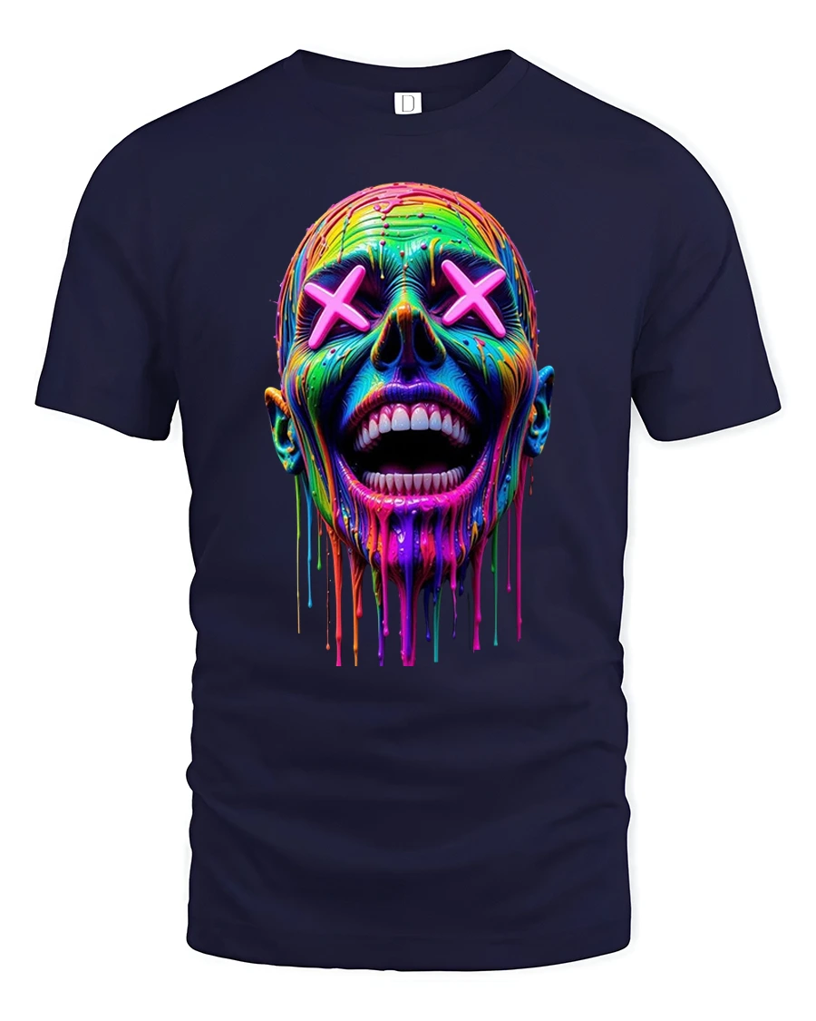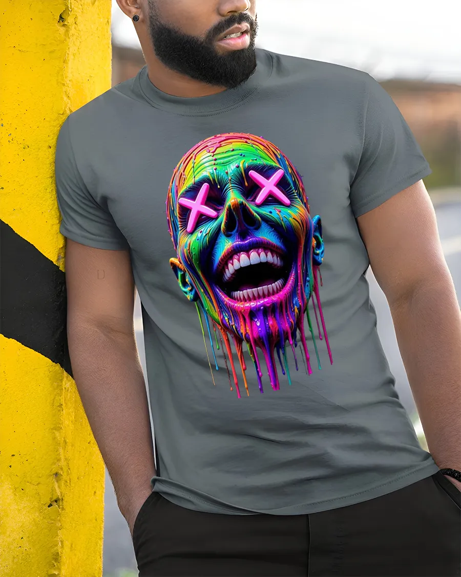 Neon Drip Smile Skull Art Streetwear Graphic T-Shirt is a bold fusion of color, chaos, and creativity.