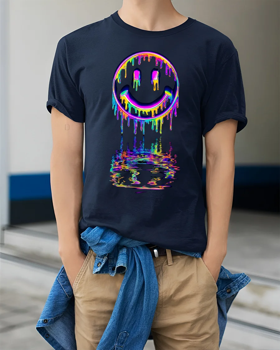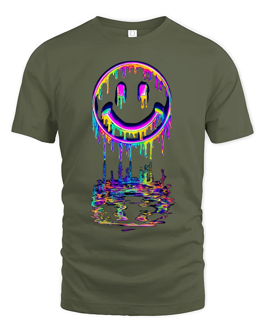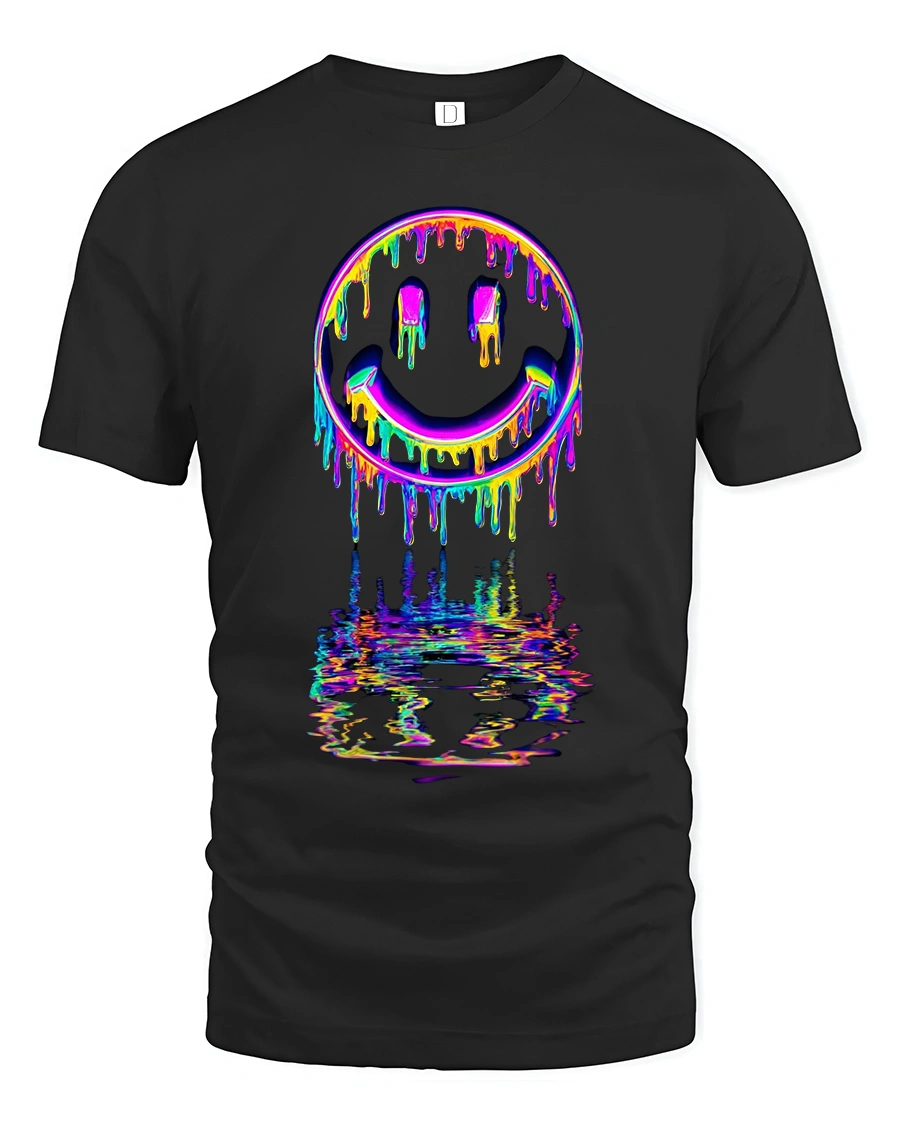 Neon Drip Smiley Tee – Vibrant Melted Rainbow Streetwear brings bold personality and electrifying color to your wardrobe. Designed for anyone who loves eye-catching art, this tee features a dripping neon smiley face with a vivid rainbow reflection that makes the design pop from every angle. The high-detail print captures a perfect mix of street style, psychedelic vibes, and modern digital art.
