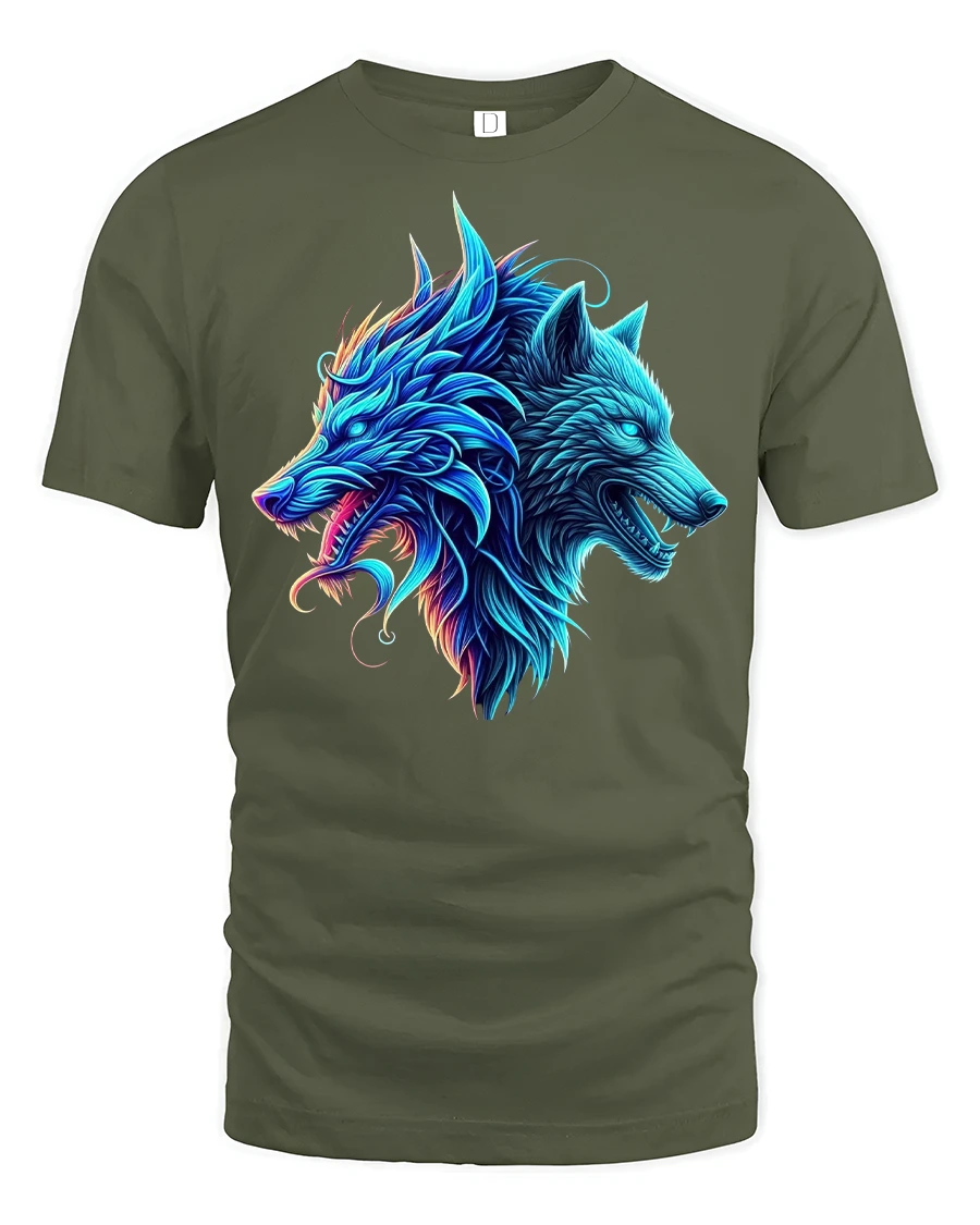 Elevate your style with the Neon Dual Wolf Spirit Graphic Tee with Tribal Vibes and showcase your love for the wild, untamed spirit of wolves. It also makes a fantastic gift for wolf lovers, gamers, and fans of mystical animal designs. A must-have for anyone who wants to wear power and personality with pride.