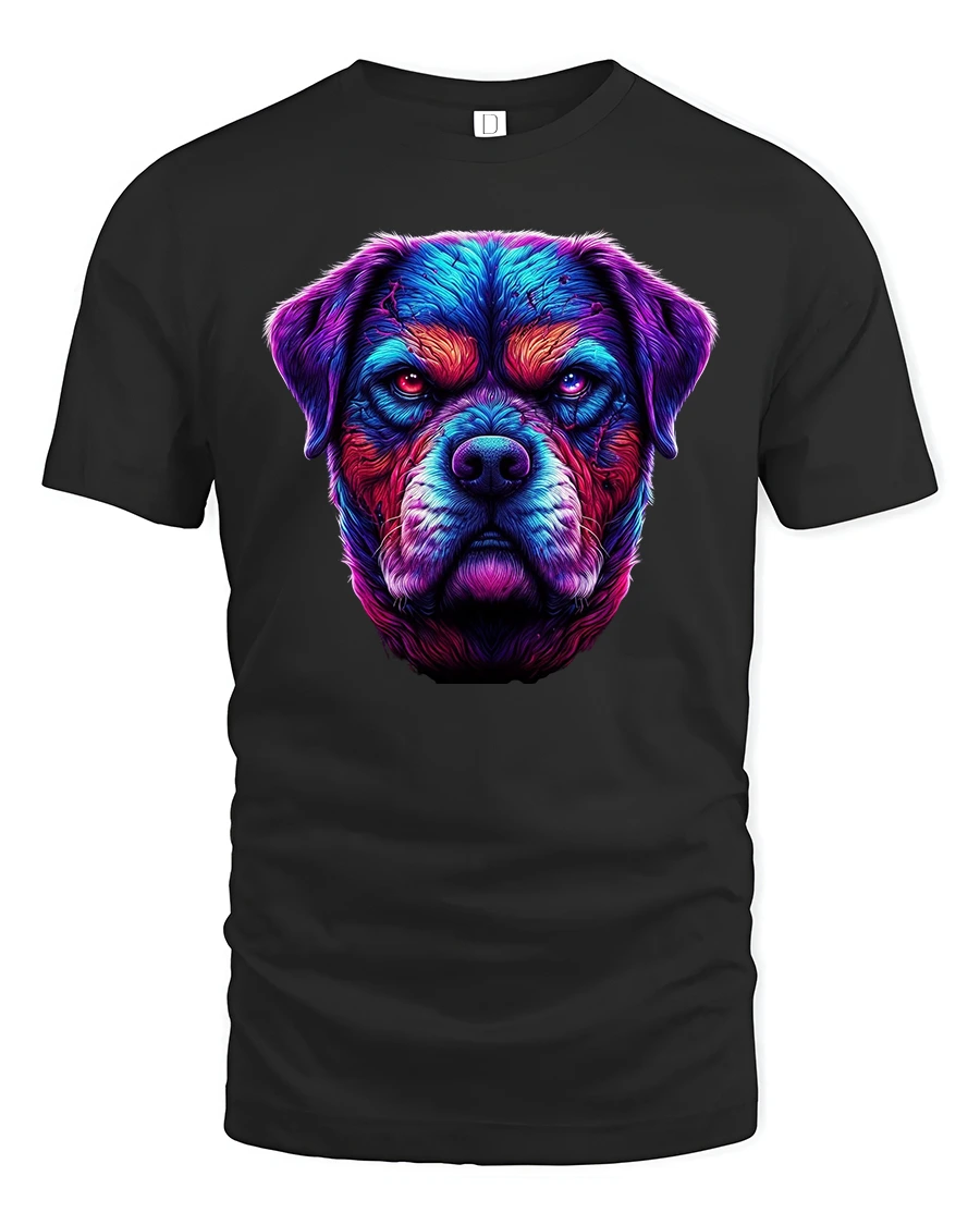 Whether you’re a proud Rottie owner or just admire their fearless charm, this neon art t-shirt is a stylish way to show your devotion.