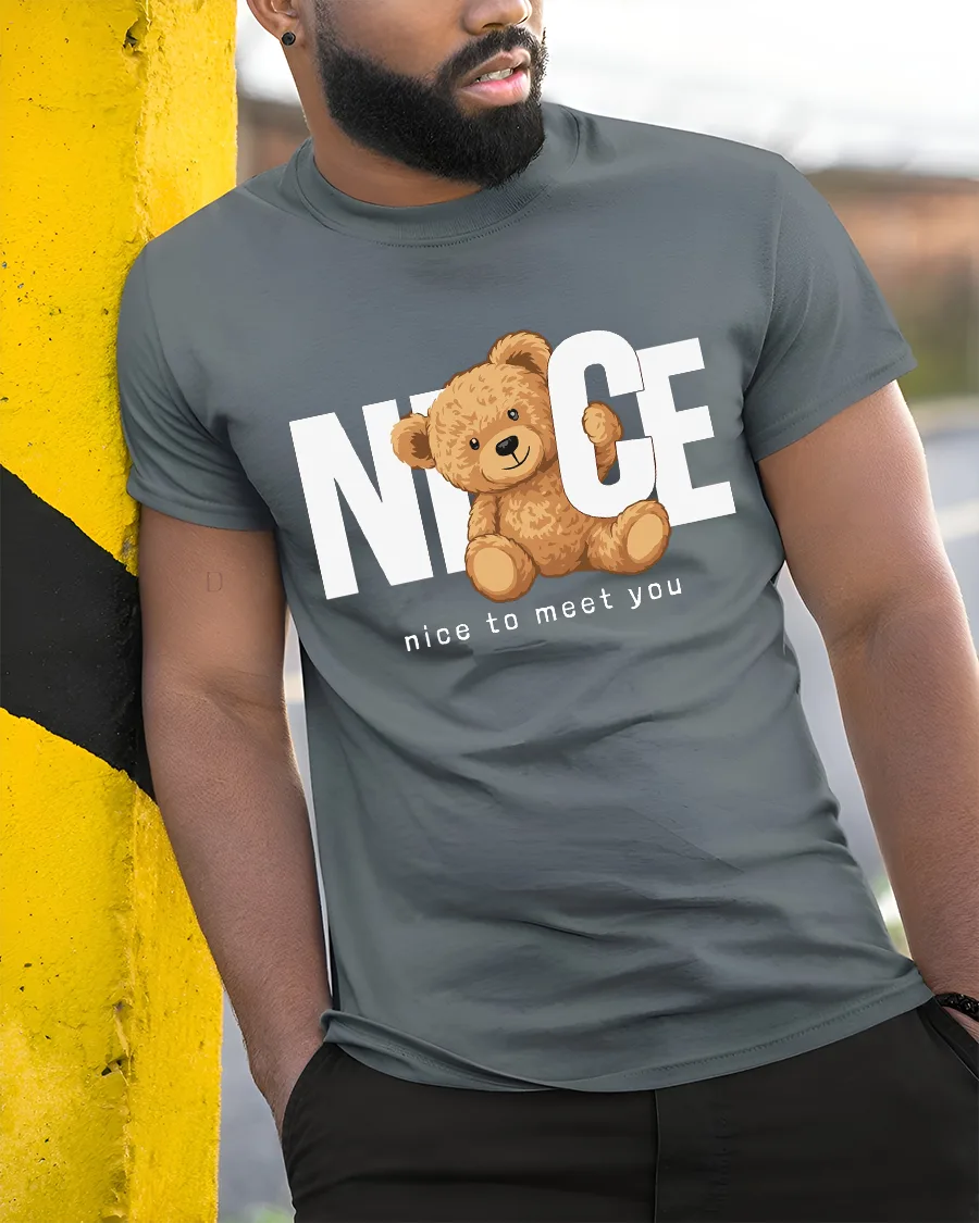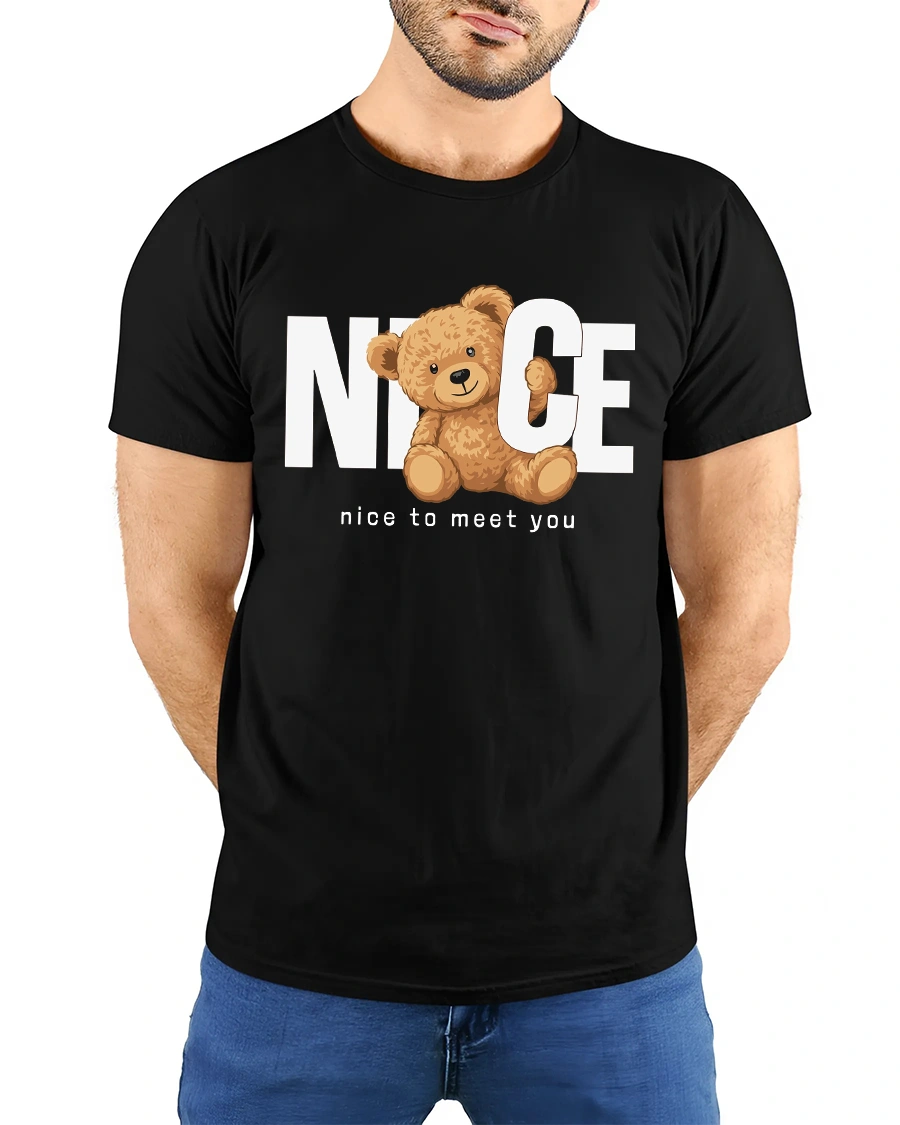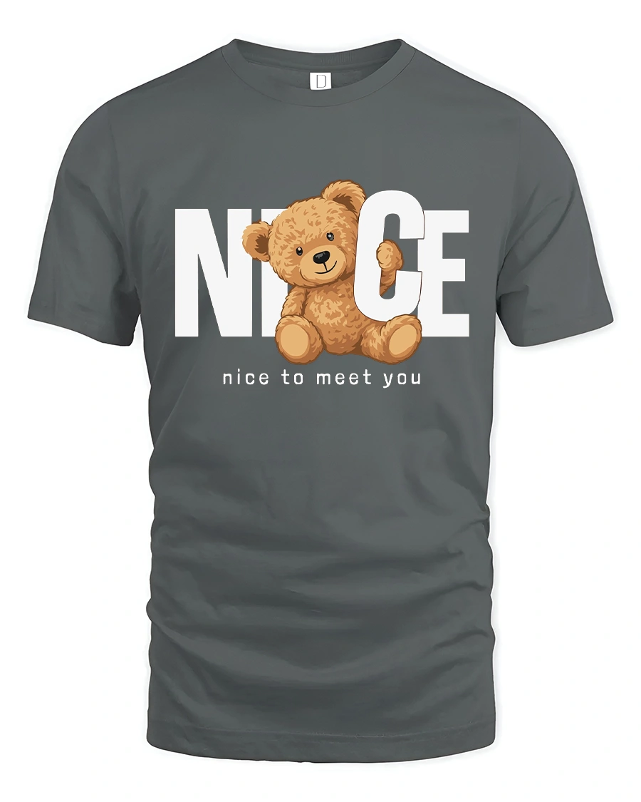 This Nice Teddy Bear Tee with Cute Greeting Message Design brings a warm and friendly touch to your everyday style. Featuring an adorable teddy bear sitting in the center of bold, clean typography that spells “NICE,” this tee adds a playful charm to your outfit while delivering the sweet phrase “nice to meet you” beneath the design. It’s perfect for anyone who loves cute artwork and uplifting, cheerful messages.