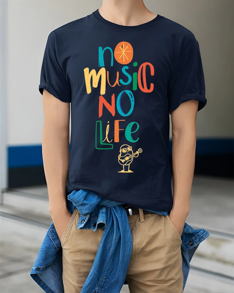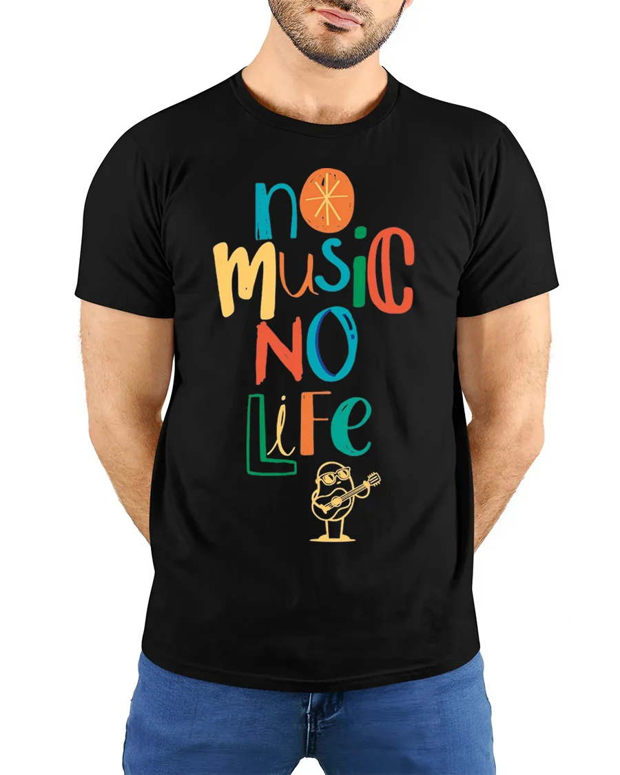 Celebrate your passion for music with the No Music No Life Colorful Quote T-shirt for Men, designed for those who believe music is more than sound — it’s a way of life.