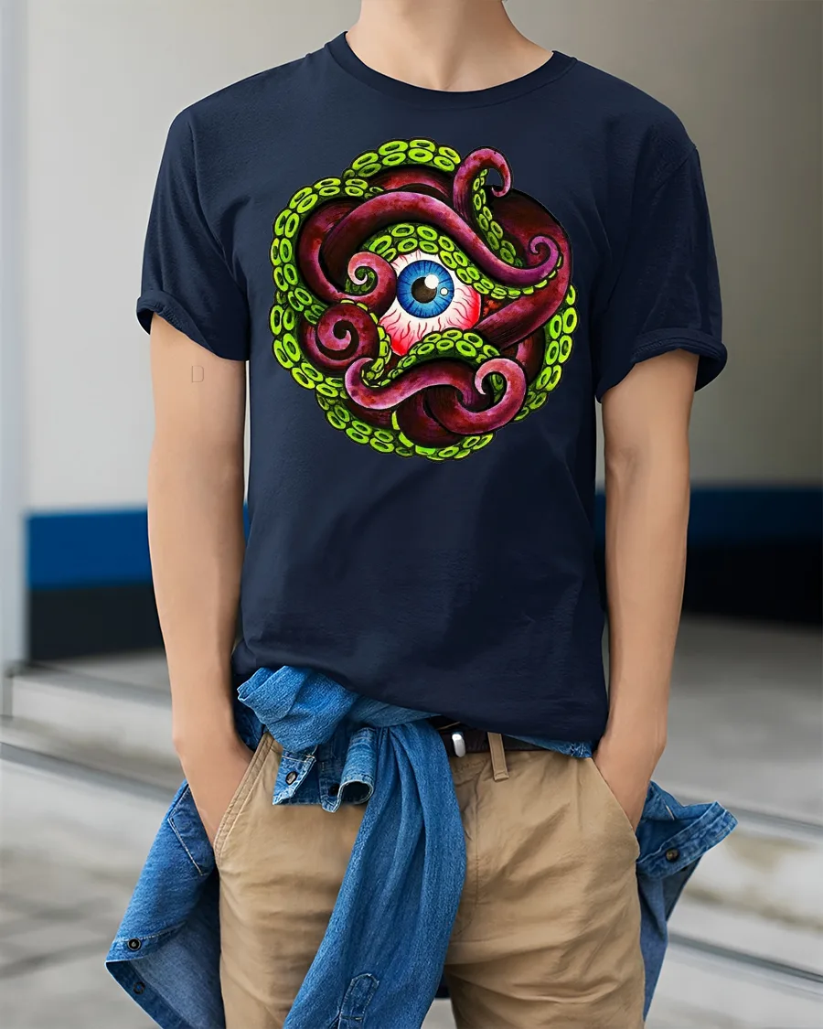 Made with soft, breathable fabric, this octopus eye t-shirt ensures comfort while giving you a bold, alternative look. It’s an excellent choice for concerts, festivals, Halloween events, or simply as a statement piece in your everyday wardrobe. Its haunting design makes it stand out and spark conversations wherever you go.