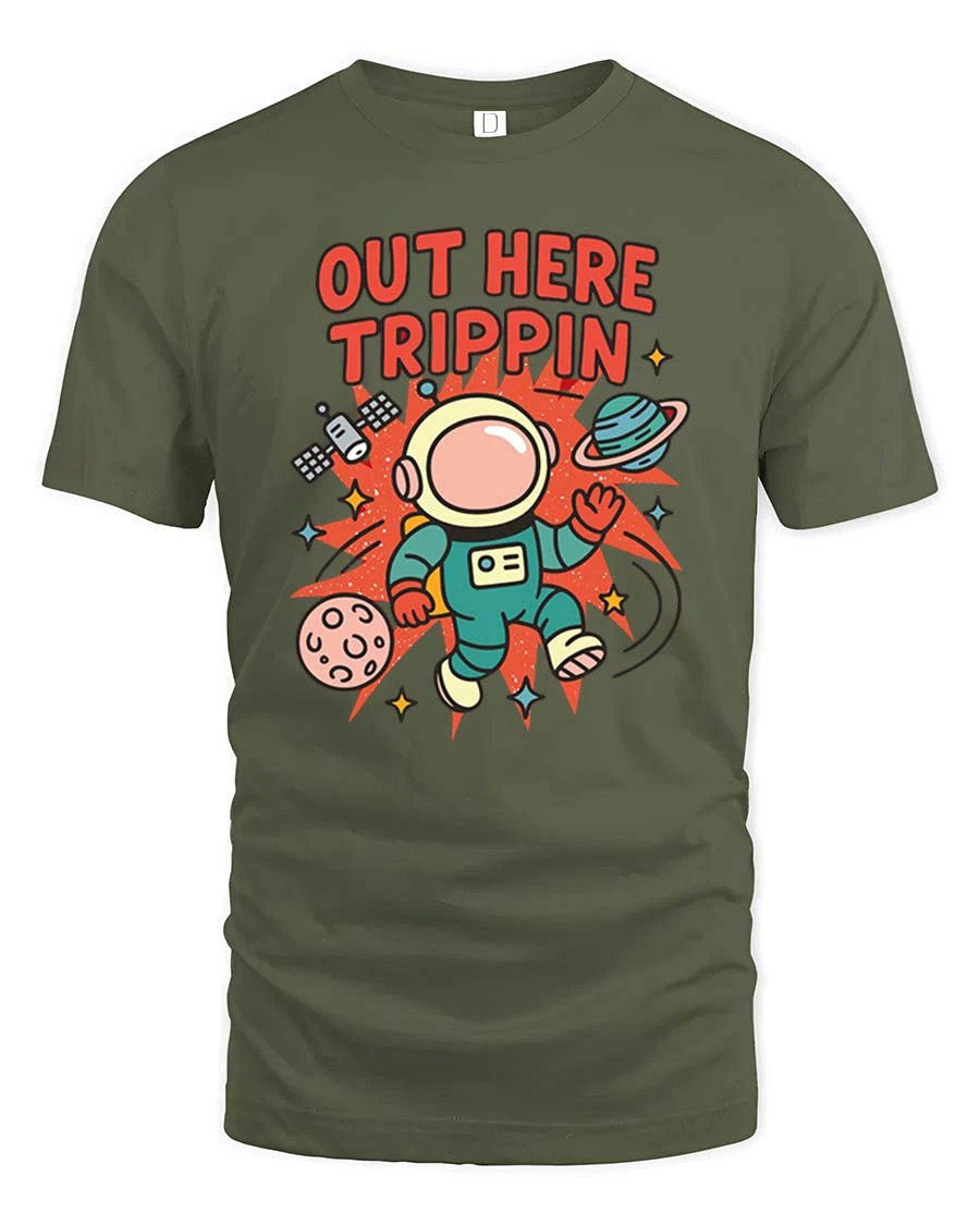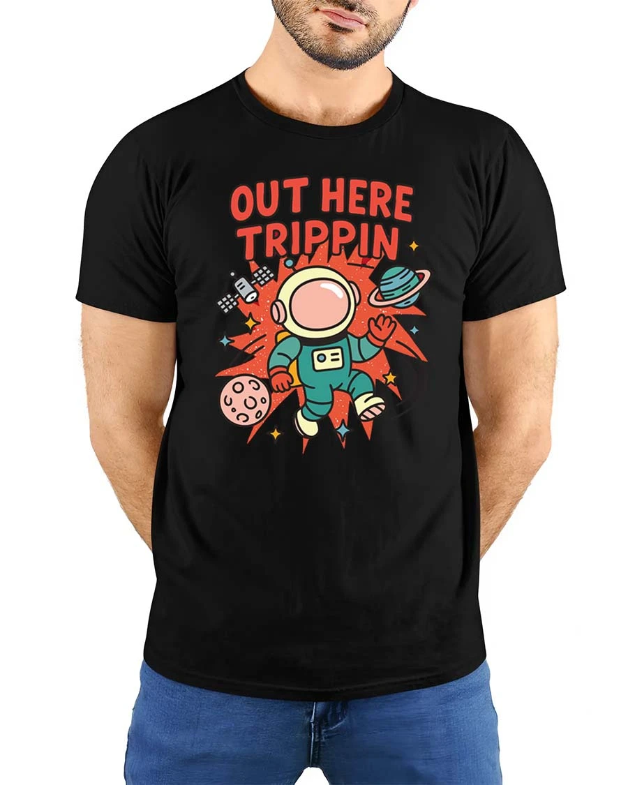 Out Here Trippin Astronaut Space Funny Graphic T-Shirt Tee combines comfort, humor, and eye catching style in one creative design. 🚀✨