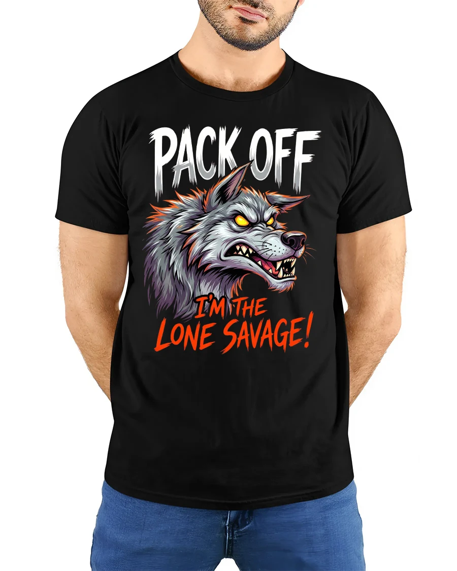 Pack Off Lone Savage Wolf Graphic T Shirt Fierce Alpha Style represents confidence individuality and untamed energy.