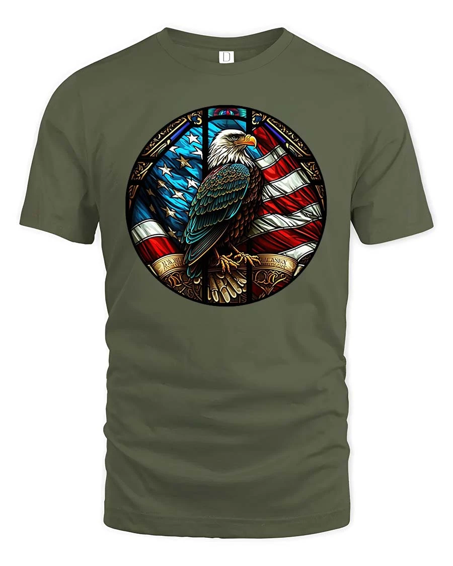The Patriotic Eagle American Flag Stained Glass Style t-shirt blends artistic detail with wearable comfort.