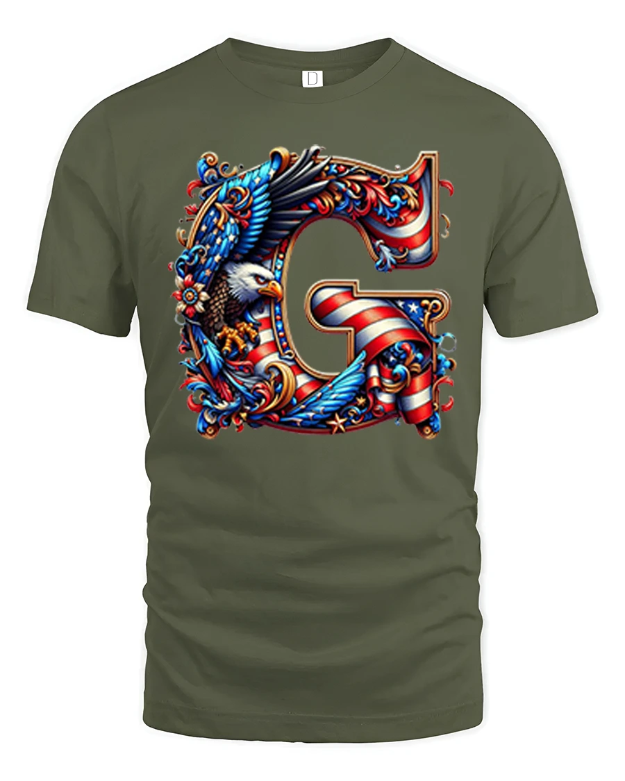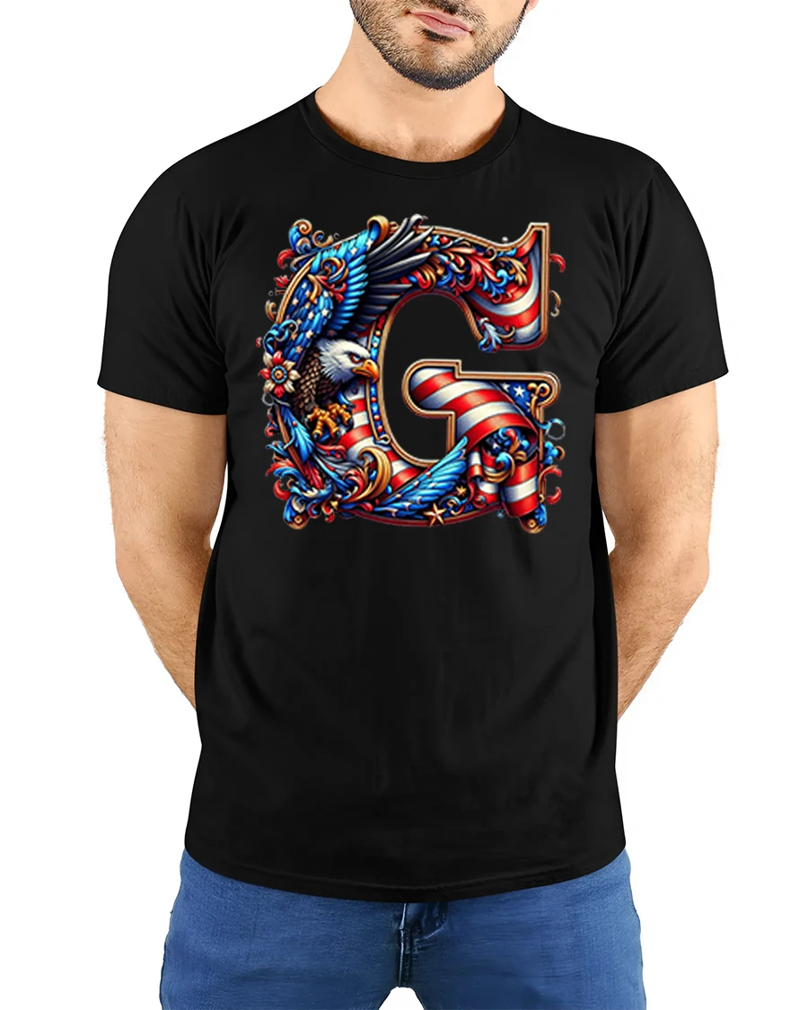 The Patriotic Eagle Letter Art Graphic Tee American Pride Tshirt showcases bold American spirit through powerful symbolic design.