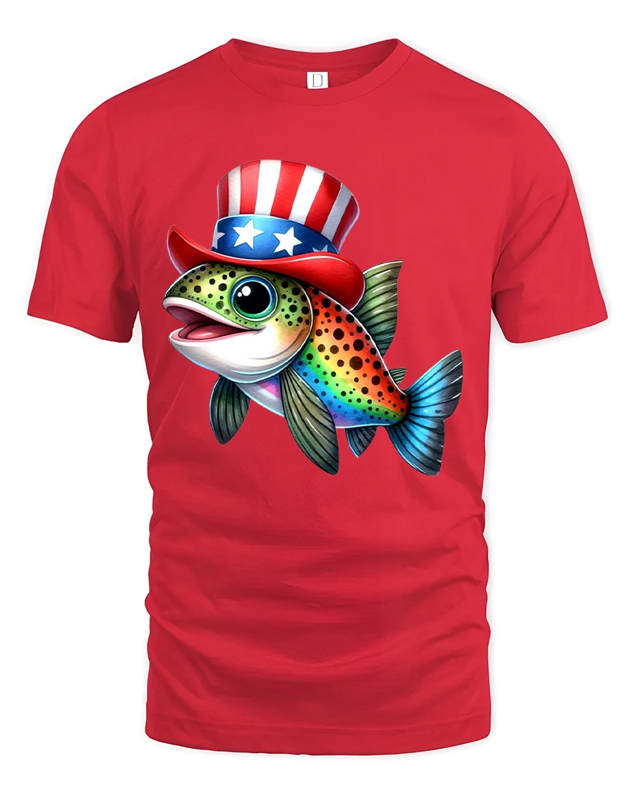 Patriotic Fish Graphic Tee is perfect for those who enjoy fun designs creative artwork and festive American themes.