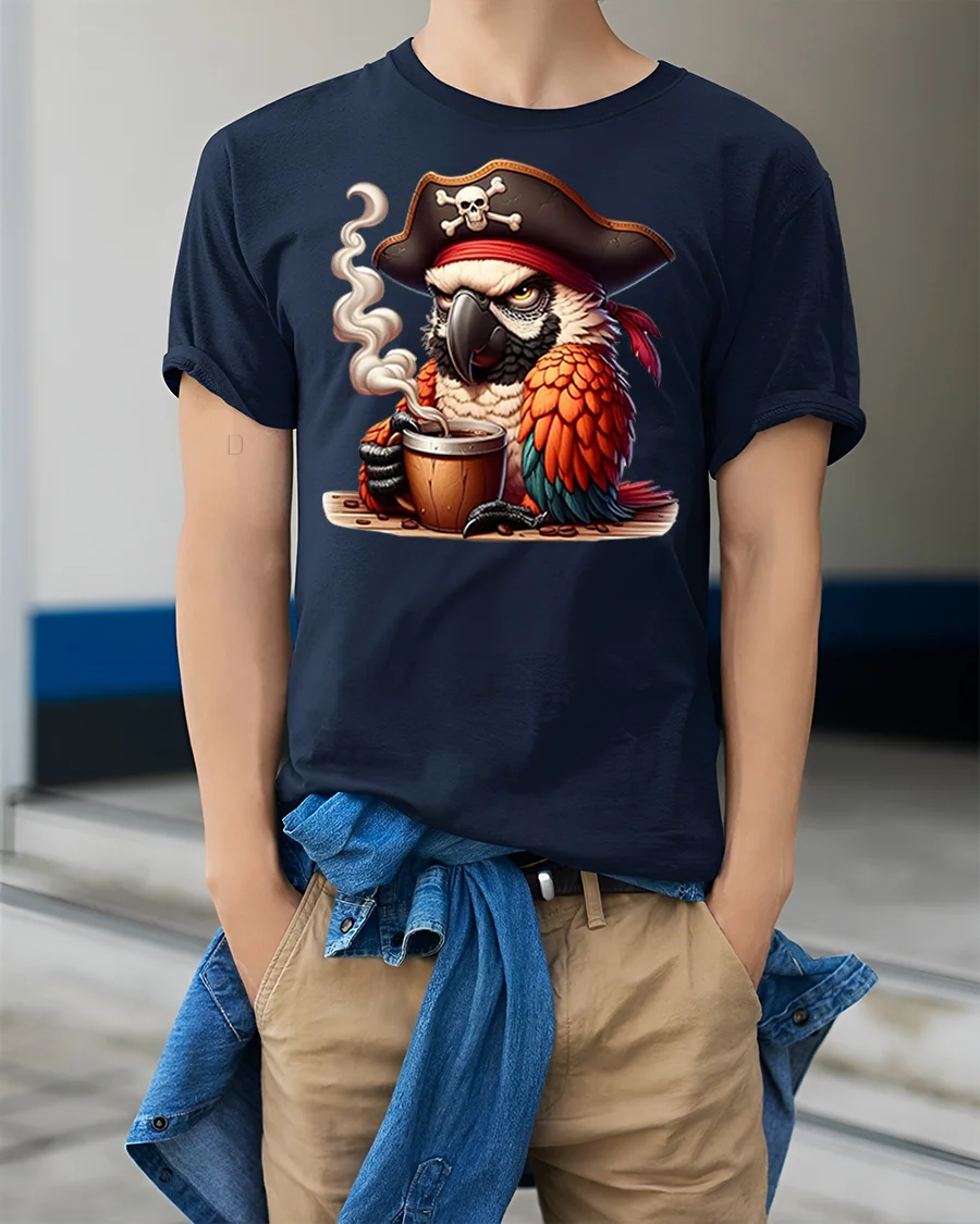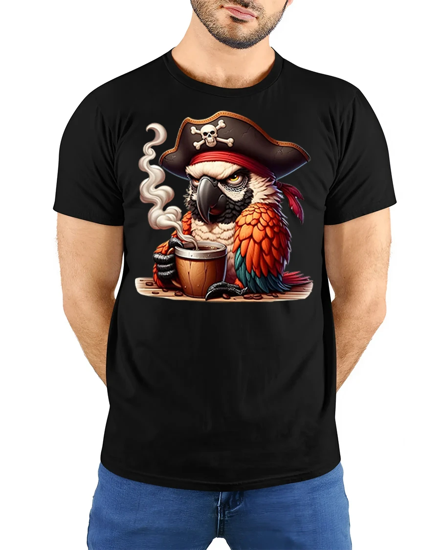 Perfect as a gift for coffee addicts, bird lovers, or fans of funny pirate-themed designs, this parrot coffee graphic tee is a must-have. Add it to your collection and bring playful energy to your day with a shirt that celebrates caffeine, color, and comedy.