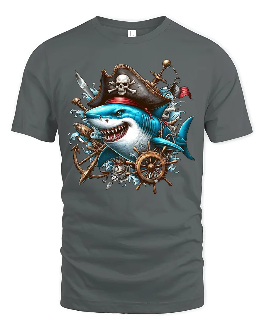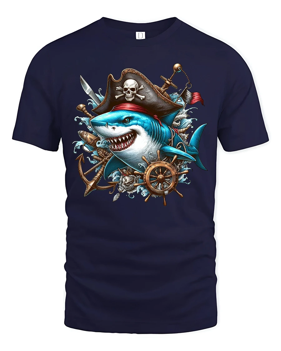 Rule the seas in style with this daring shark pirate t-shirt — a true statement piece for bold personalities.