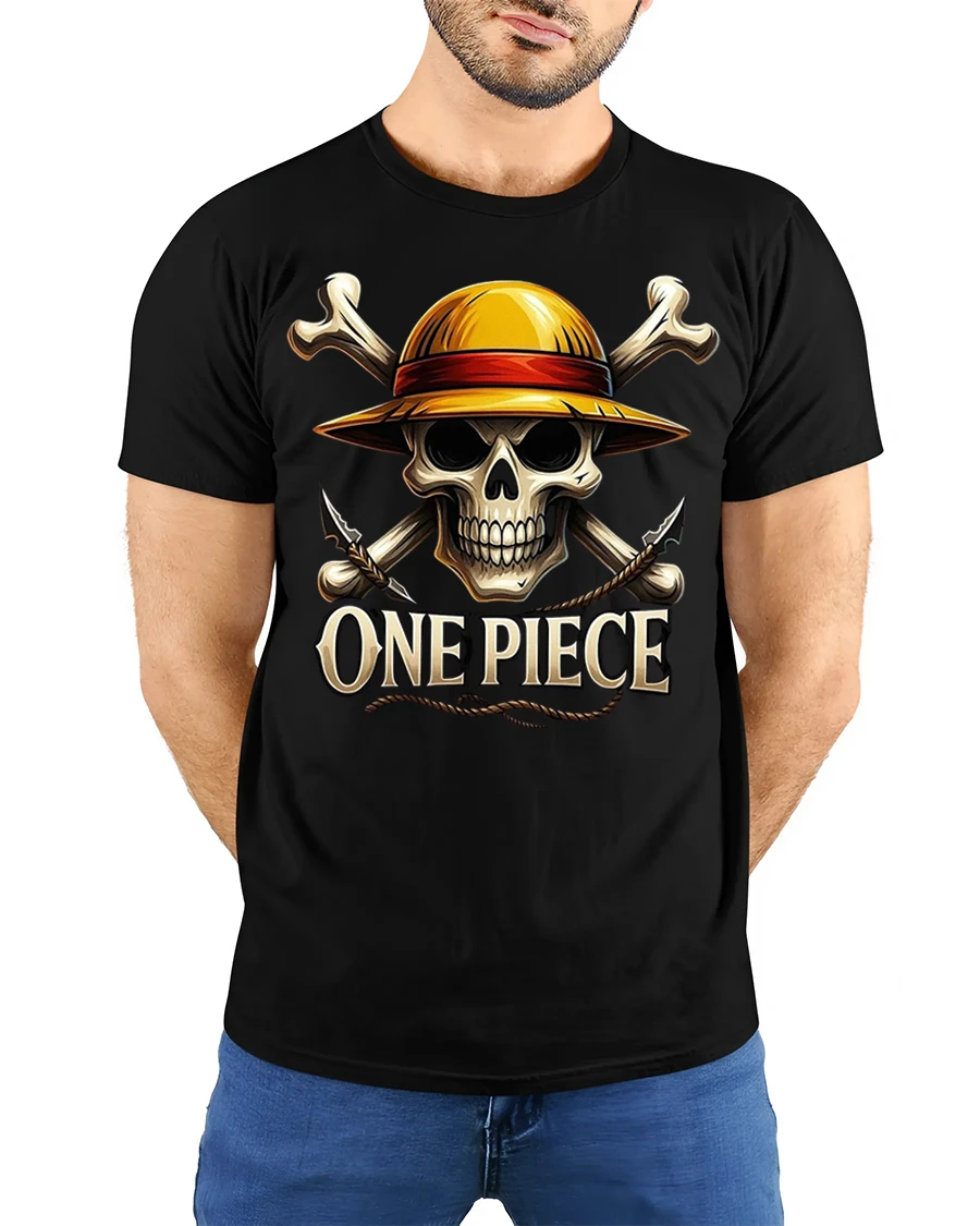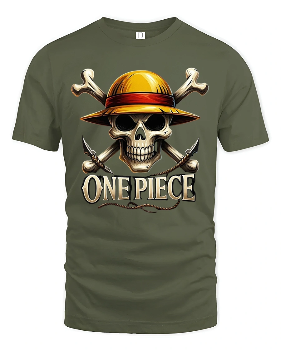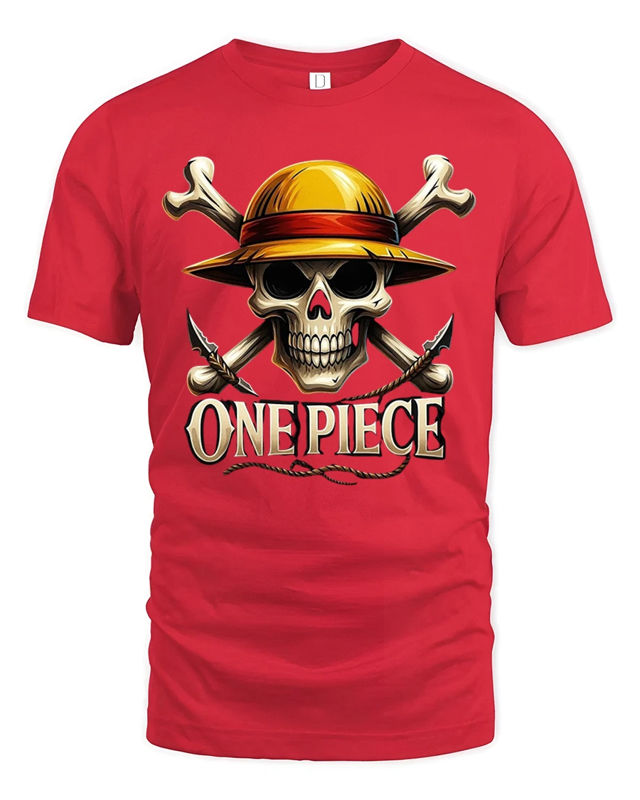 Featuring a detailed skull with a straw hat and crossed bones, this design embodies courage, freedom, and the spirit of the open sea.