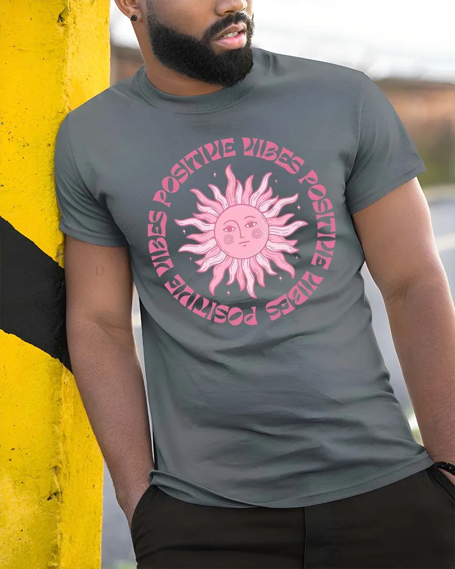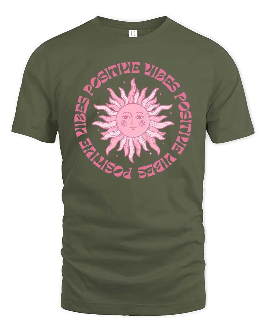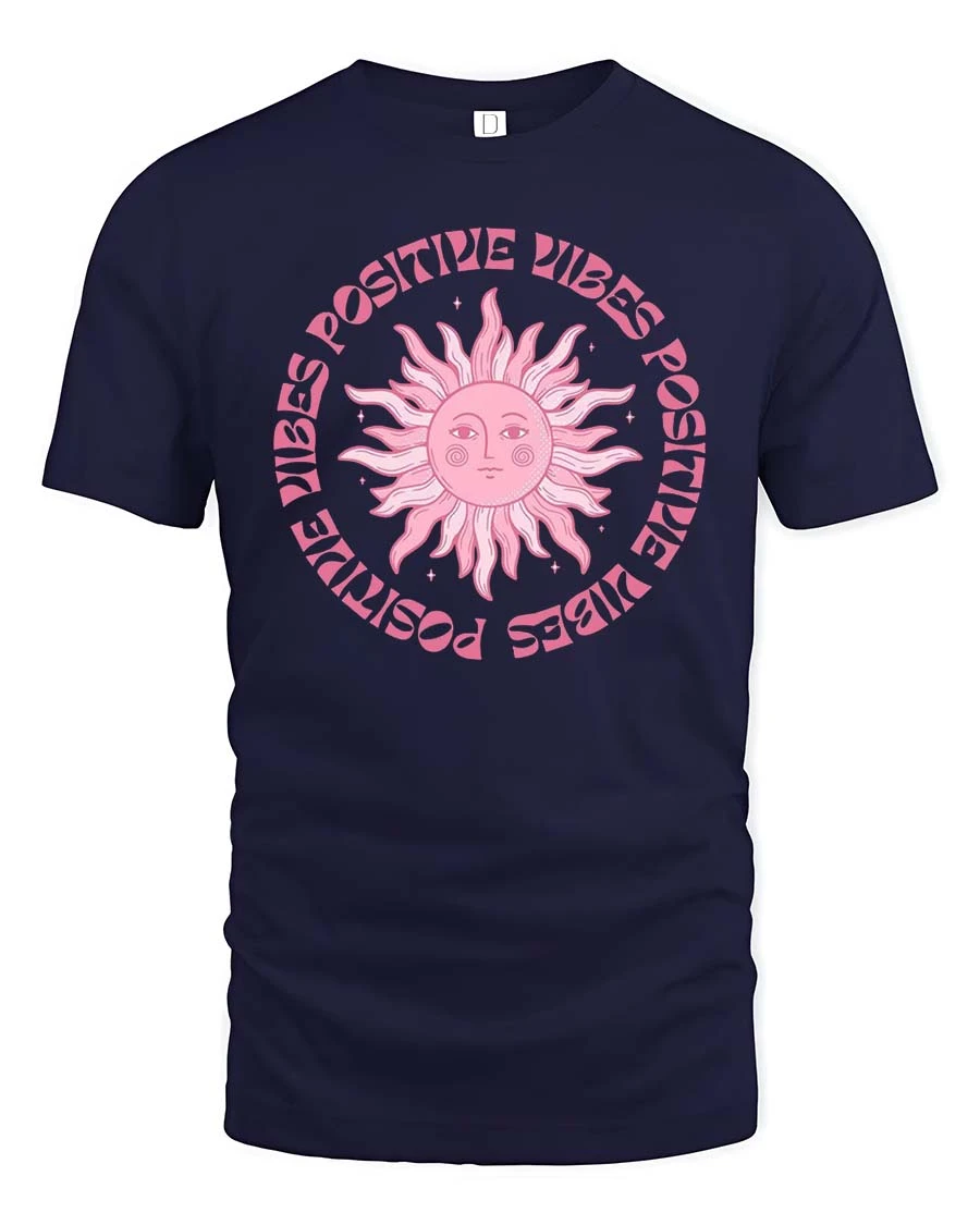 Positive Vibes Retro Sun Aesthetic Inspirational Graphic T-Shirt expresses uplifting energy through a stylish artistic design.
