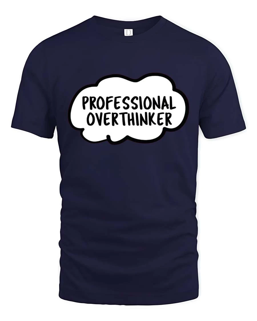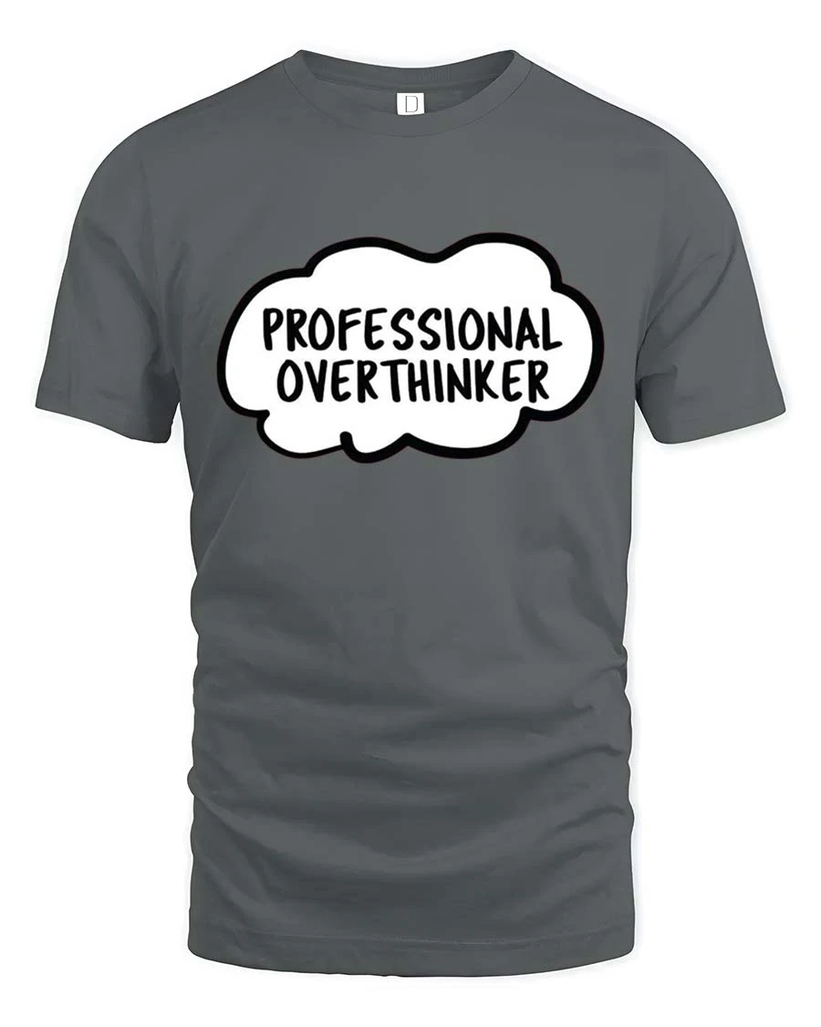 Professional Overthinker Funny Quote Graphic t-shirt Tee expresses relatable humor through a clean minimalist text design.