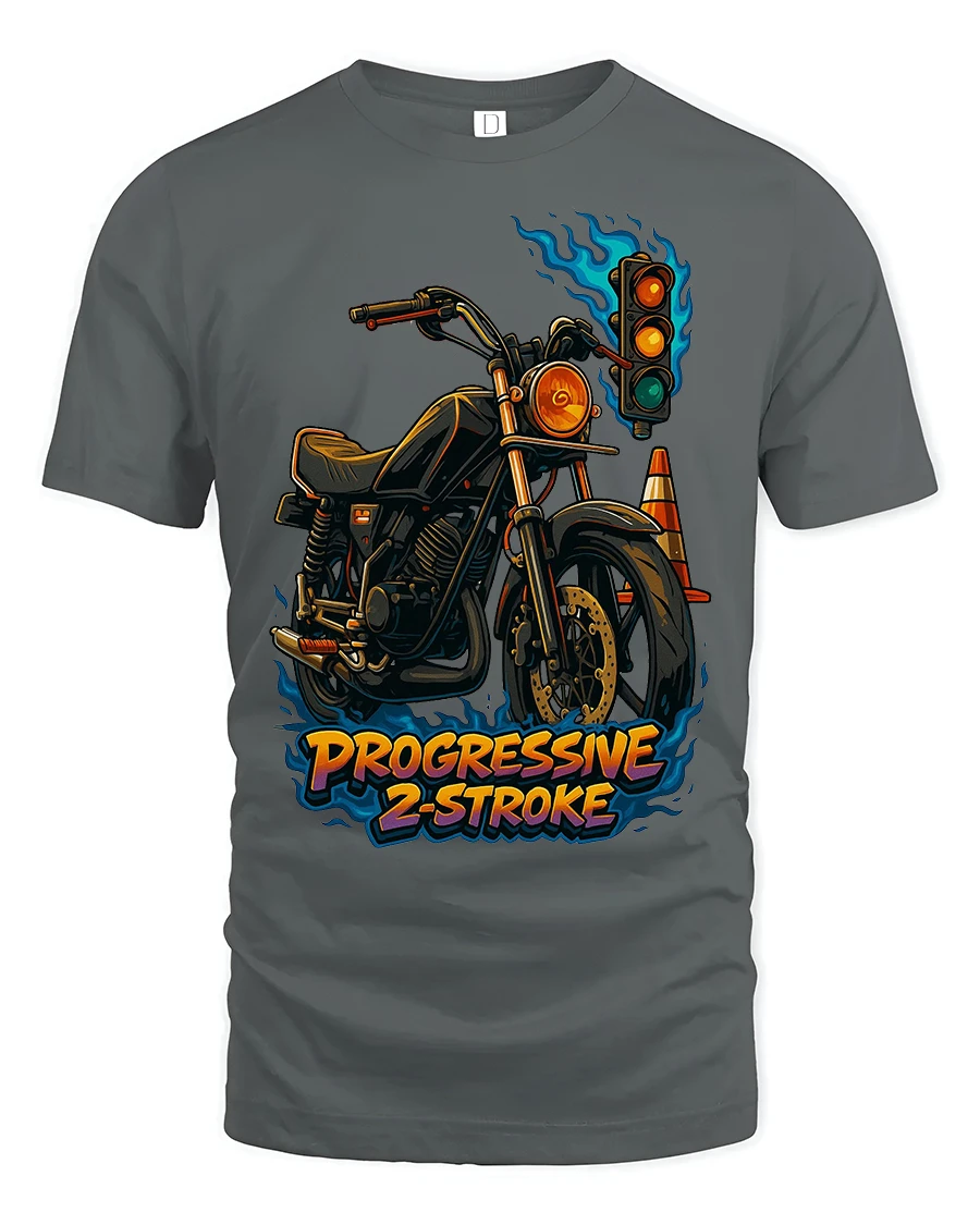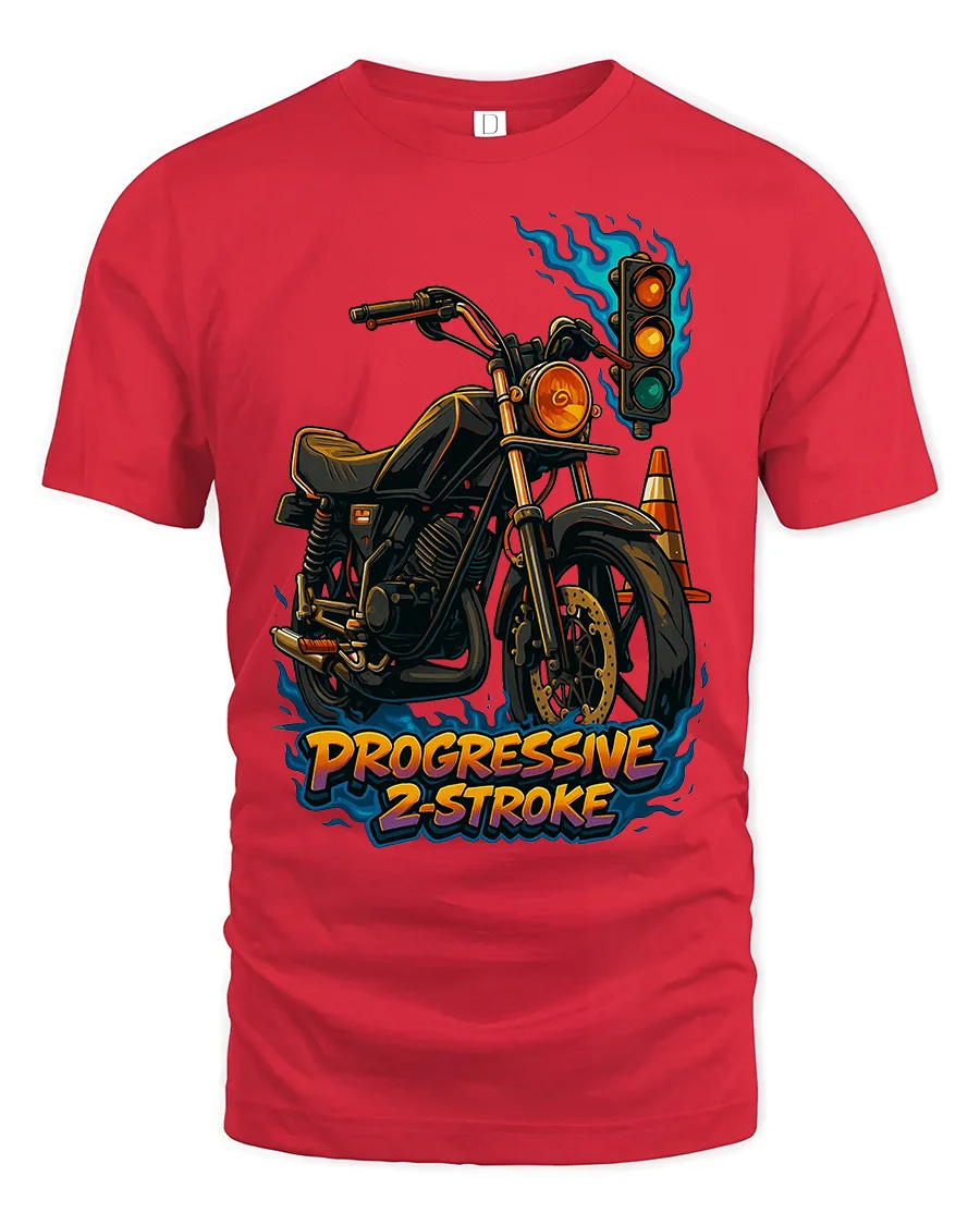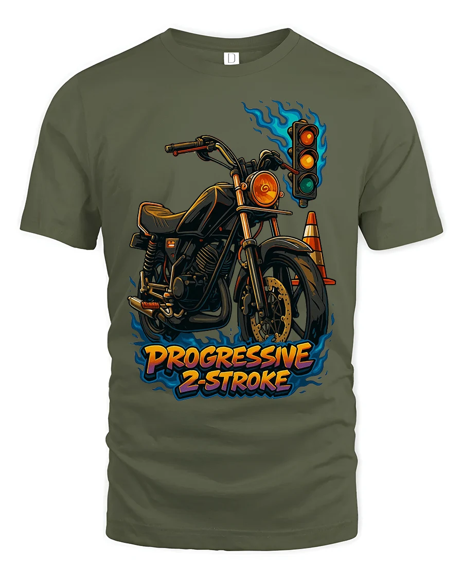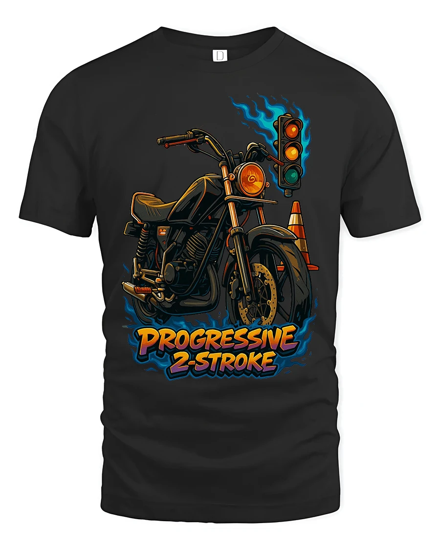 Progressive 2 Stroke T Shirt Retro Motorcycle Art captures the raw energy and rebellious spirit of classic bike culture.