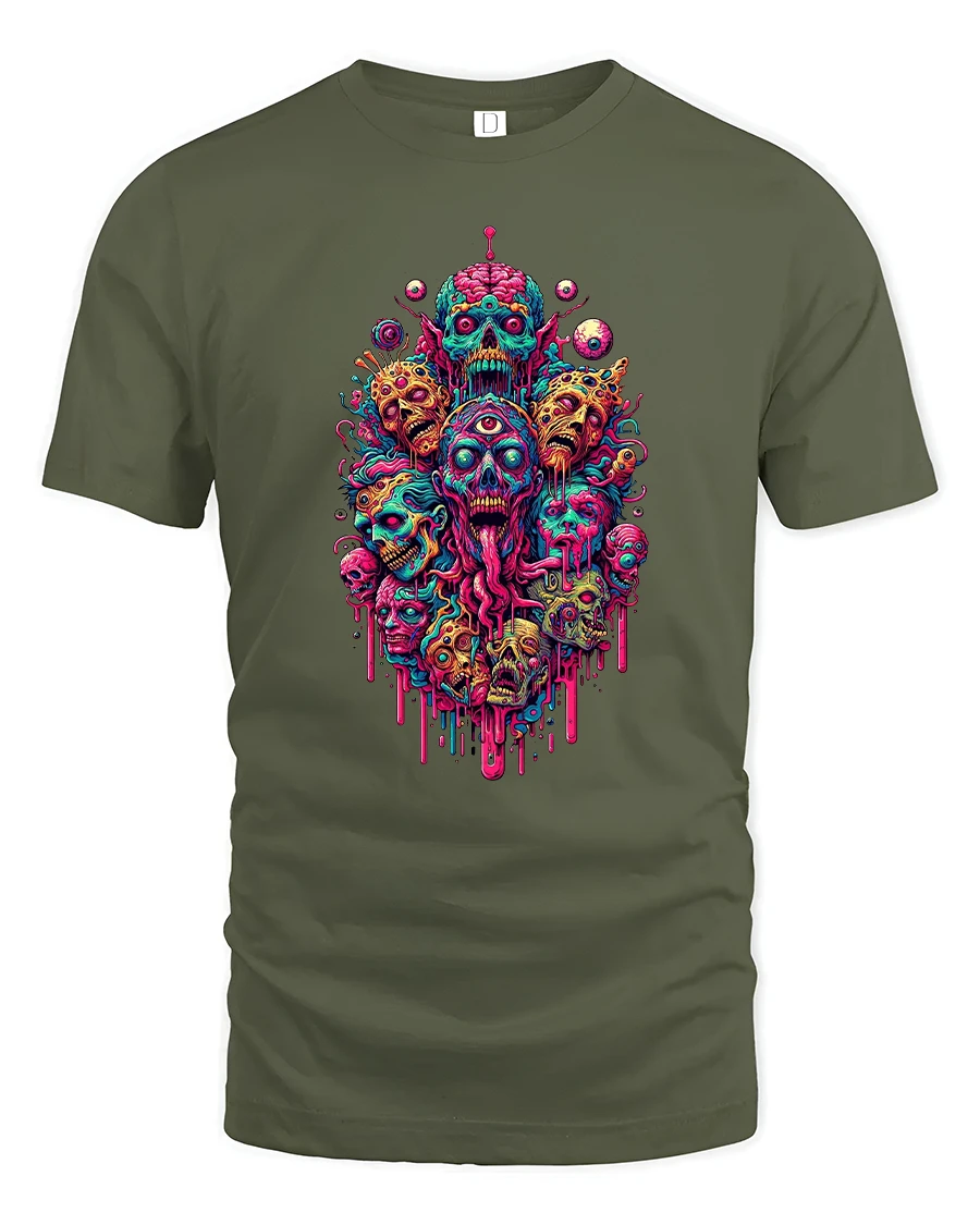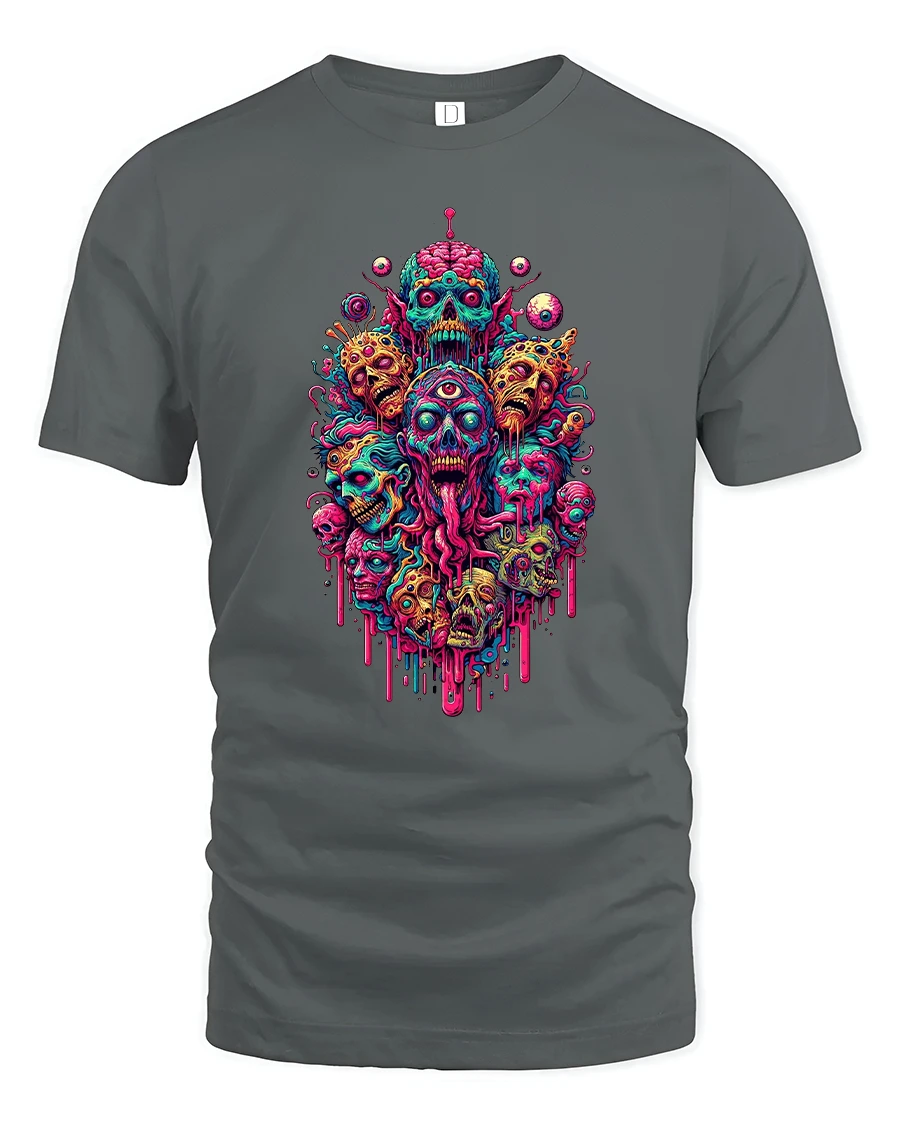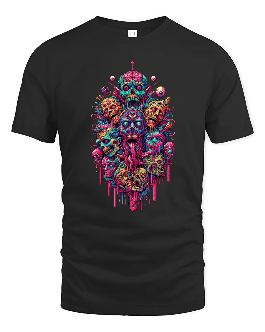 Psychedelic Horror Skull Monster Art Graphic Tshirt Neon Chaos delivers an explosive fusion of surreal color and dark imagination.