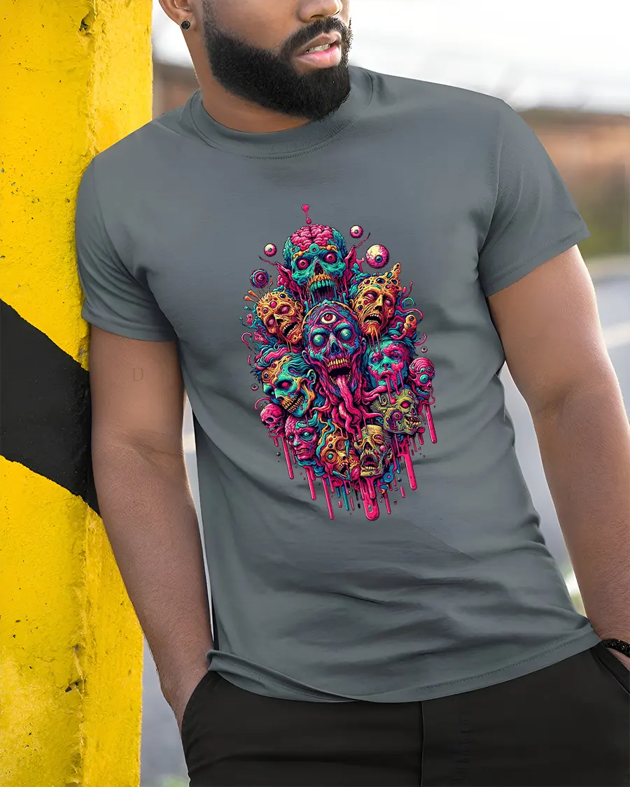 Psychedelic Horror Skull Monster Art Graphic Tshirt Neon Chaos is ideal for fans of horror art surreal visuals and bold self expression.