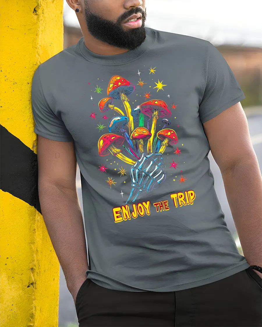 Wear the Psychedelic Mushroom Skeleton Hand Tee for Trippy Style Lovers to add a burst of color and creativity to your wardrobe. It’s a fun, artistic, and conversation-starting piece ideal for free spirits, dreamers, and anyone who embraces bold self-expression.