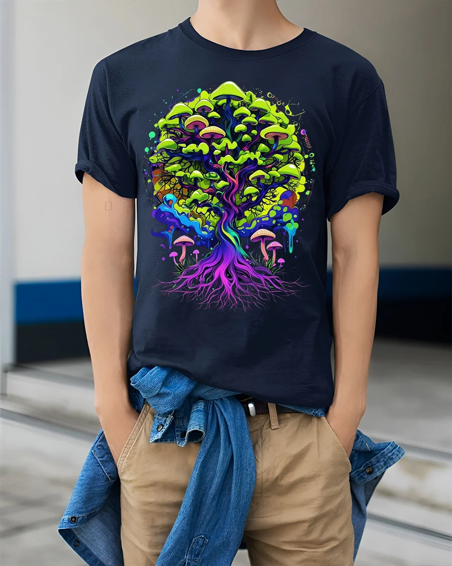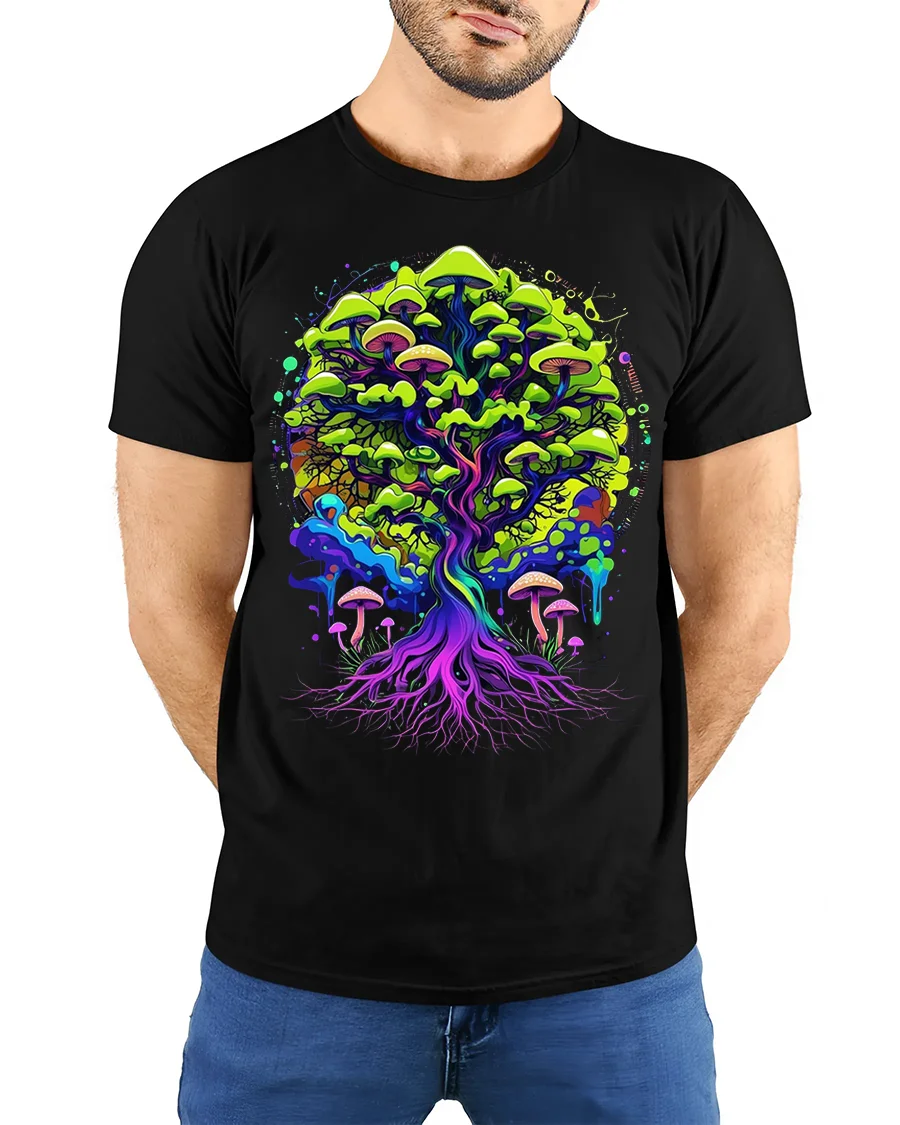 This “Psychedelic Mushroom Tree” tee is more than just clothing; it’s a wearable piece of art that invites wonder. It makes a fantastic gift for nature enthusiasts, fantasy lovers, art aficionados, or anyone who enjoys expressing their unique style. Add a touch of enchanting color and creativity to your wardrobe with this comfortable and truly unique tee.