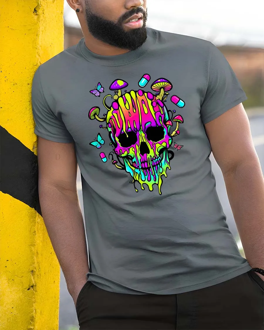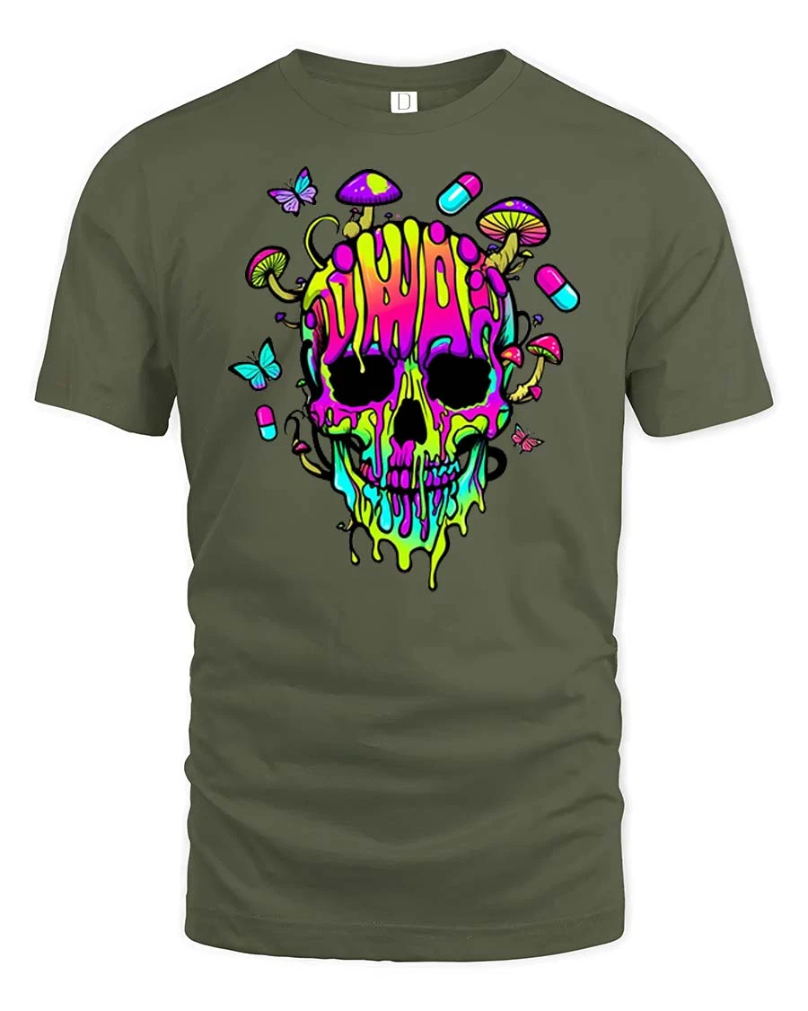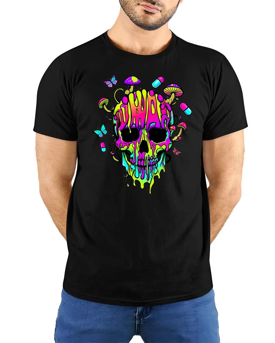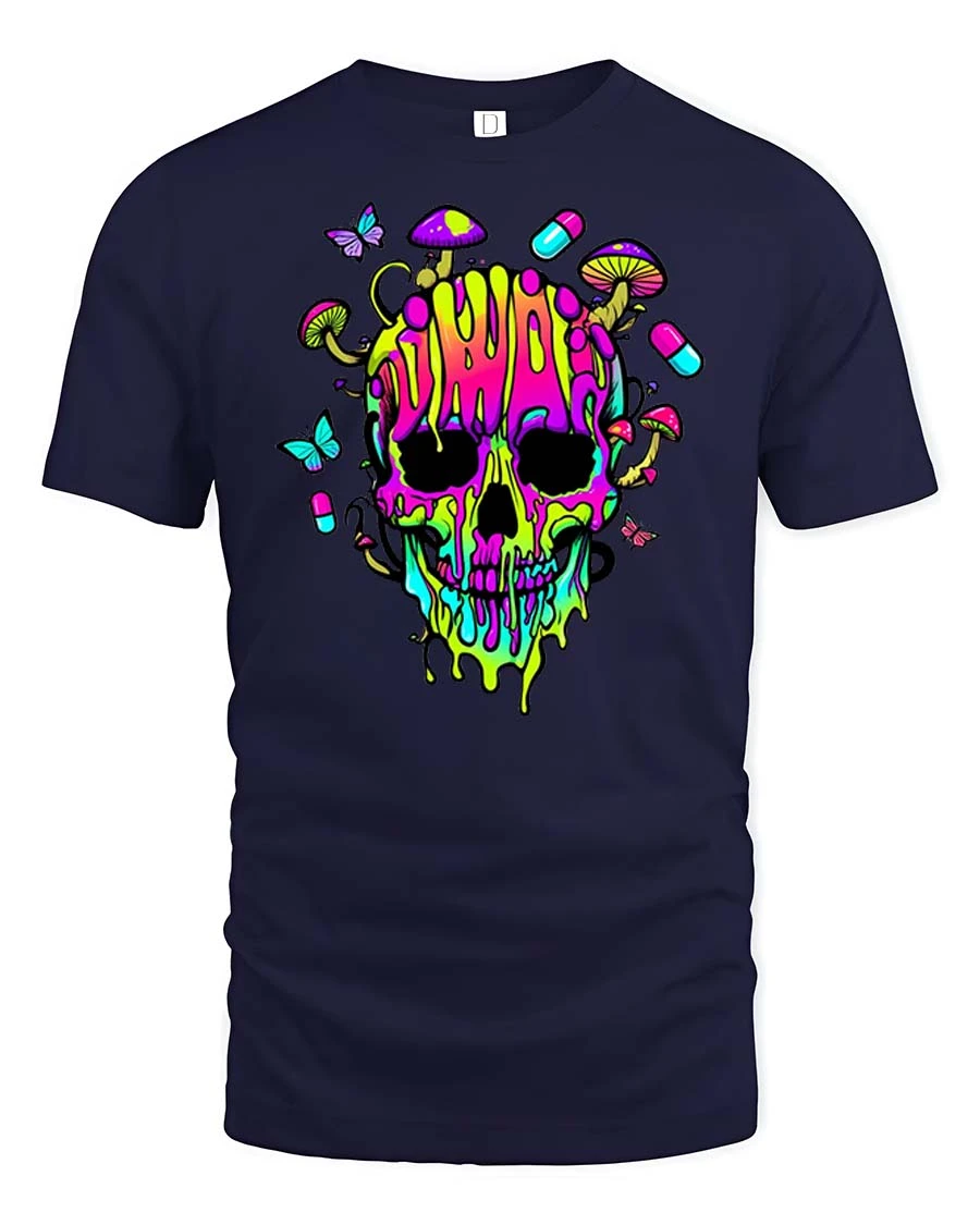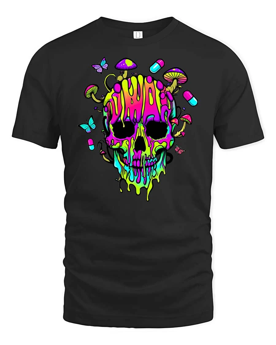 Psychedelic Neon Skull Mushroom Trippy Graphic Art Tshirt makes an impressive addition to any graphic apparel collection.