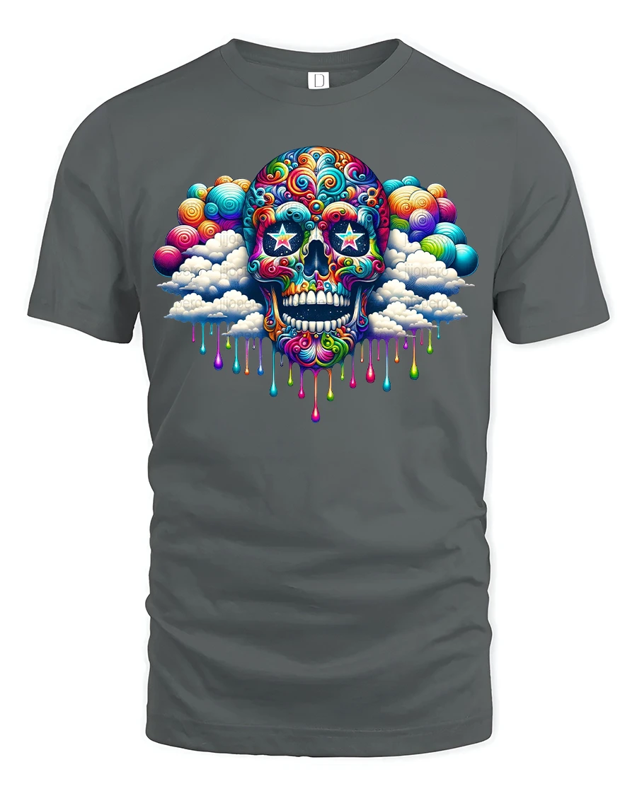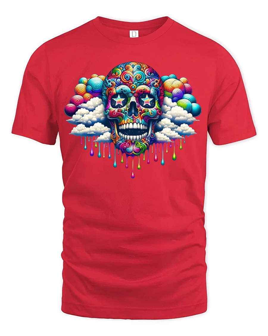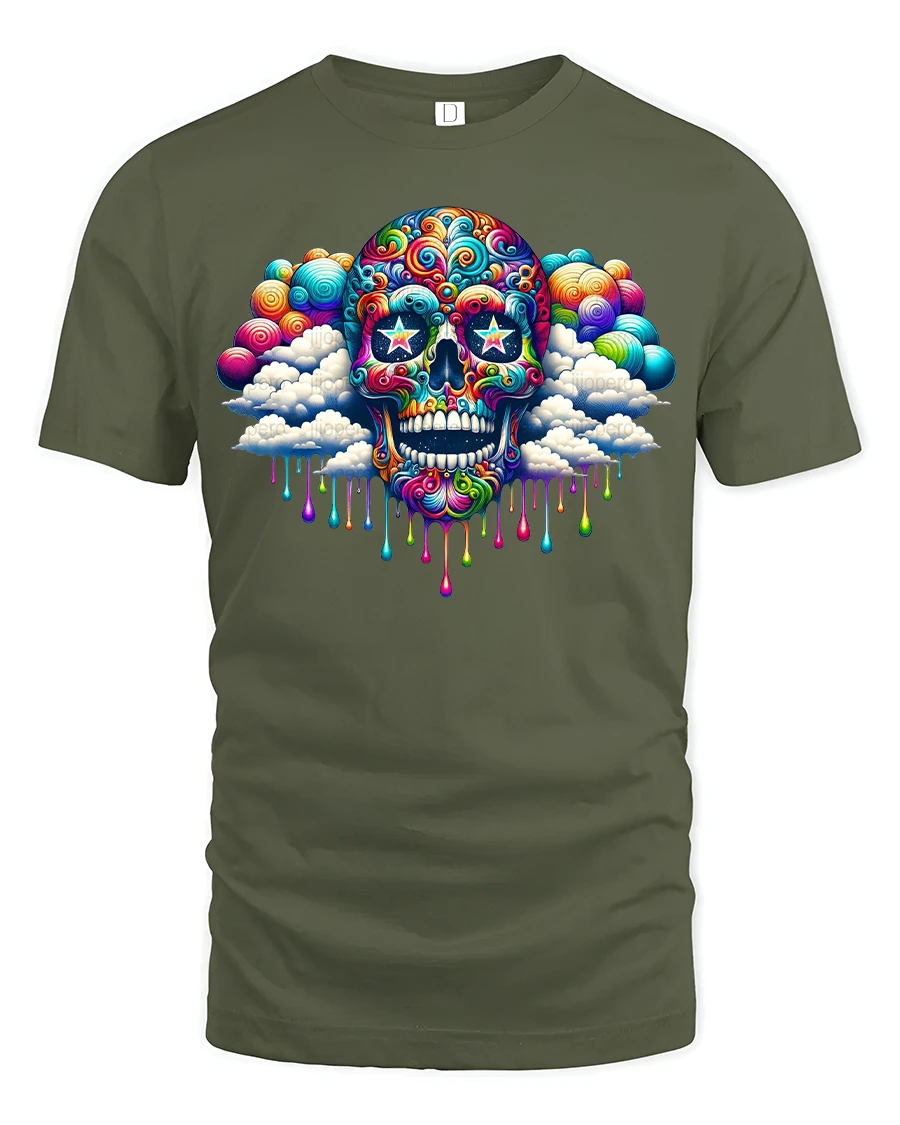 Psychedelic Skull Clouds Graphic Tee Festival Vibes is the ultimate statement piece for those who love bold, colorful, and artistic fashion. Featuring a vibrant skull surrounded by swirling clouds and dripping rainbow colors, this shirt captures a psychedelic aesthetic that’s perfect for festivals, concerts, and casual streetwear.