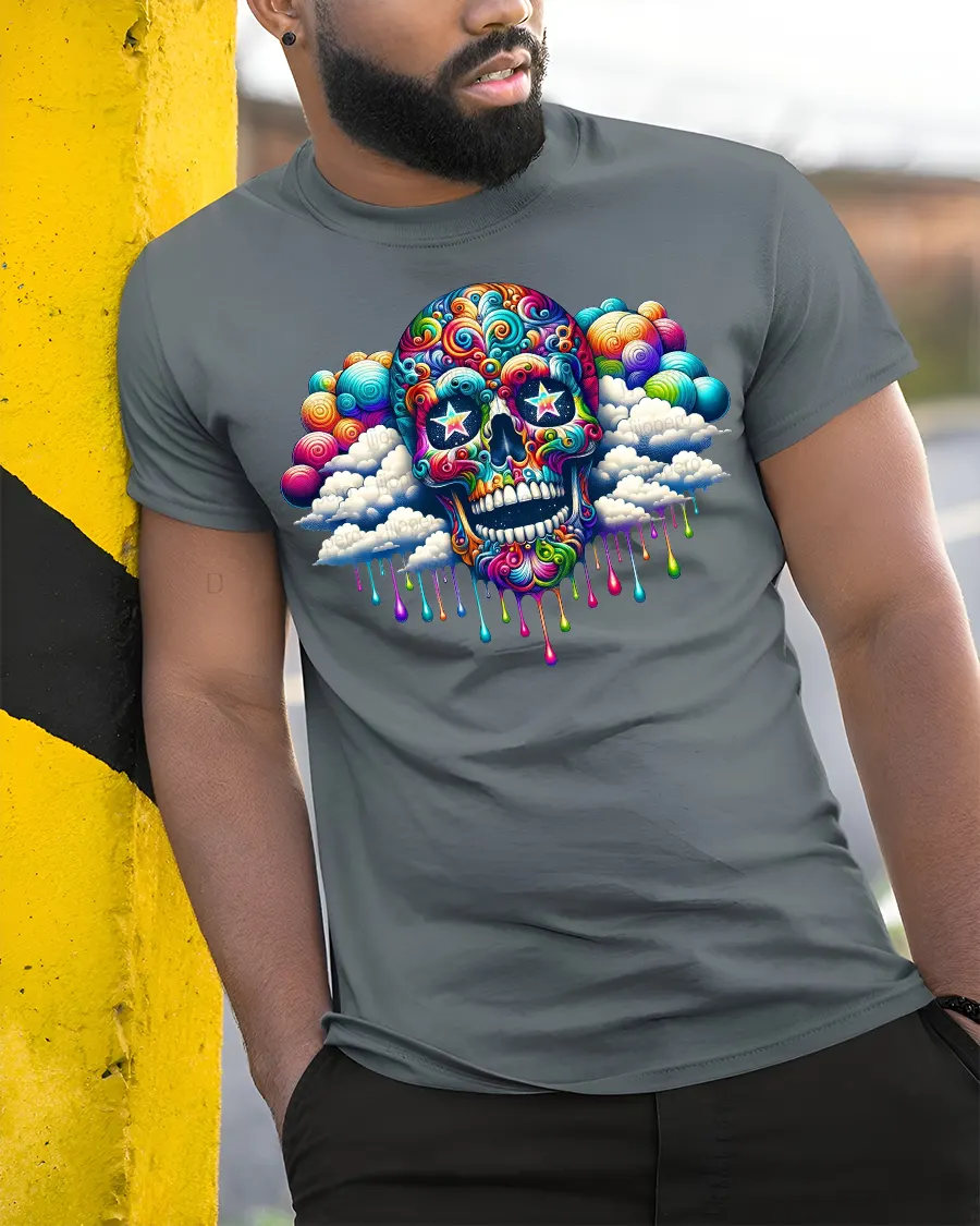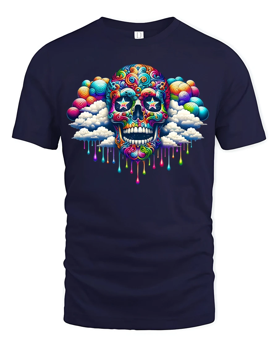 Perfect for festivals, Halloween events, or everyday wear, this colorful skull tshirt pairs effortlessly with jeans, shorts, or layered outfits. It also makes a fantastic gift for fans of alternative fashion, skull art, or psychedelic style. Step out in bold colors and let your personality shine with this one-of-a-kind graphic tee.